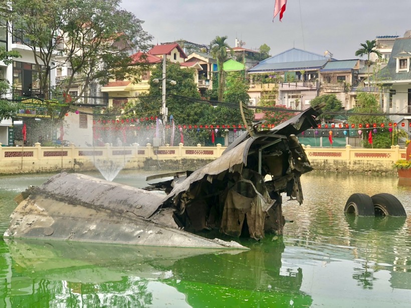 Cận cảnh xác máy bay B52 bị bắn rơi trong lòng hồ Hữu Tiệp
