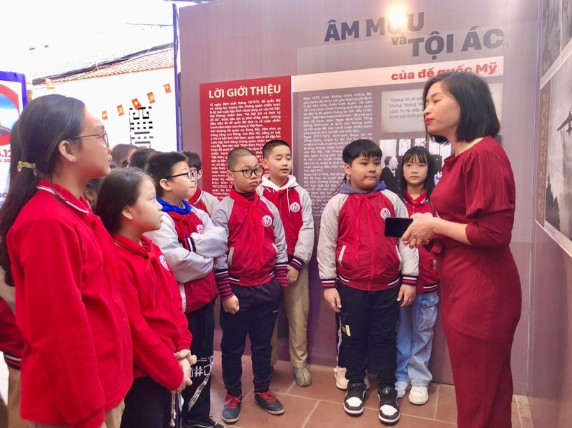 Bắt đầu chuyến đi khám phá, các bạn học sinh được tham quan triển lãm “50 năm chiến thắng Hà Nội - Điện Biên Phủ trên không” qua sự hướng dẫn của cô hướng dẫn viên vô cùng duyên dáng. Và thật may mắn, cùng thời điểm đó, học sinh đã được gặp gỡ, giao lưu và trò chuyện cùng các ông/bà là Cựu chiến binh phường Ngọc Hà.