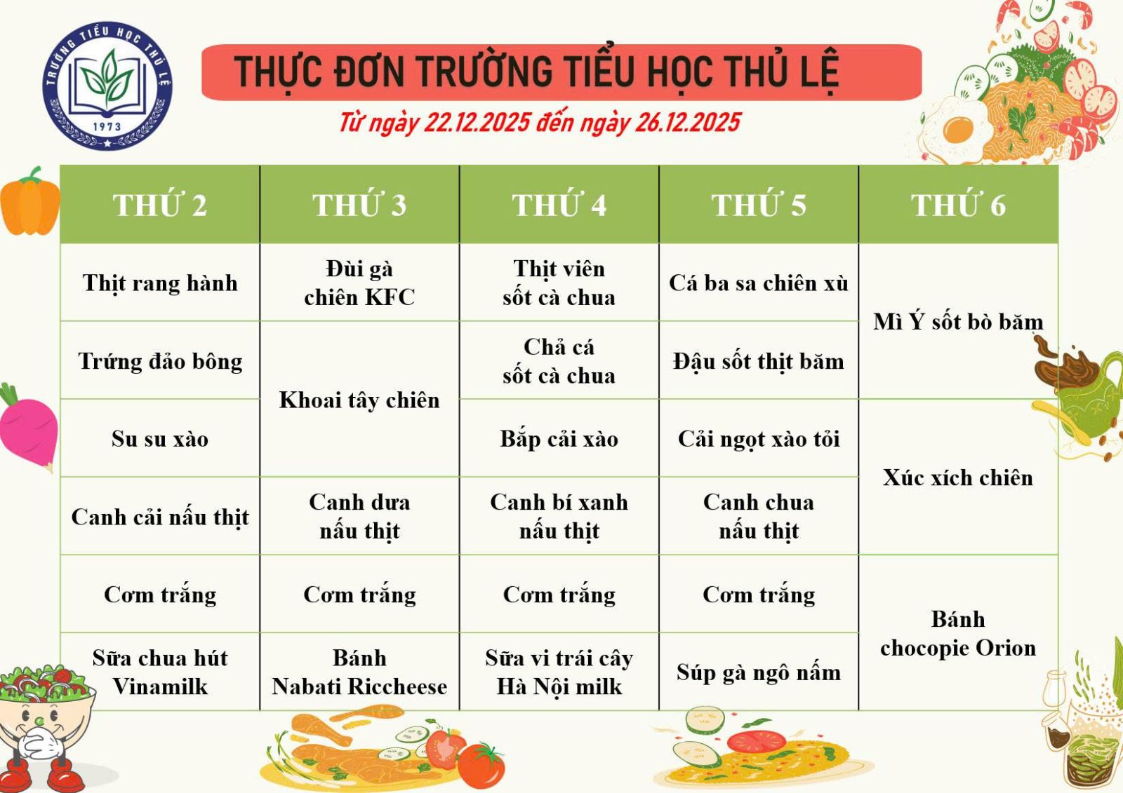 Nhà trường gửi tới các bậc PH và các con HS thực đơn tuần 4 tháng 12/2025. Trân trọng!