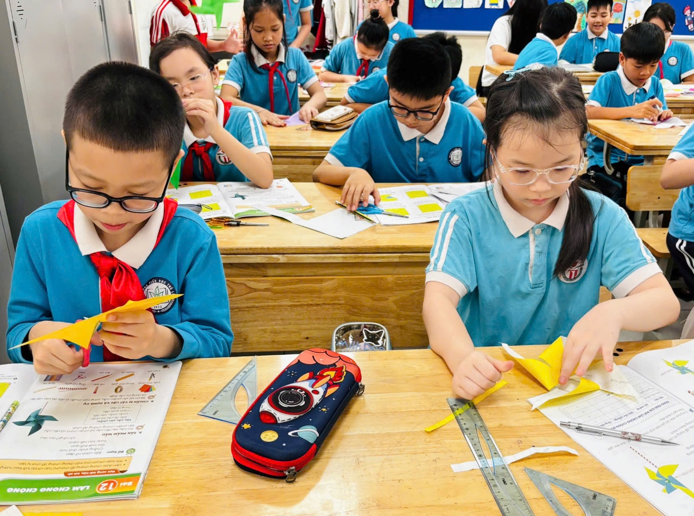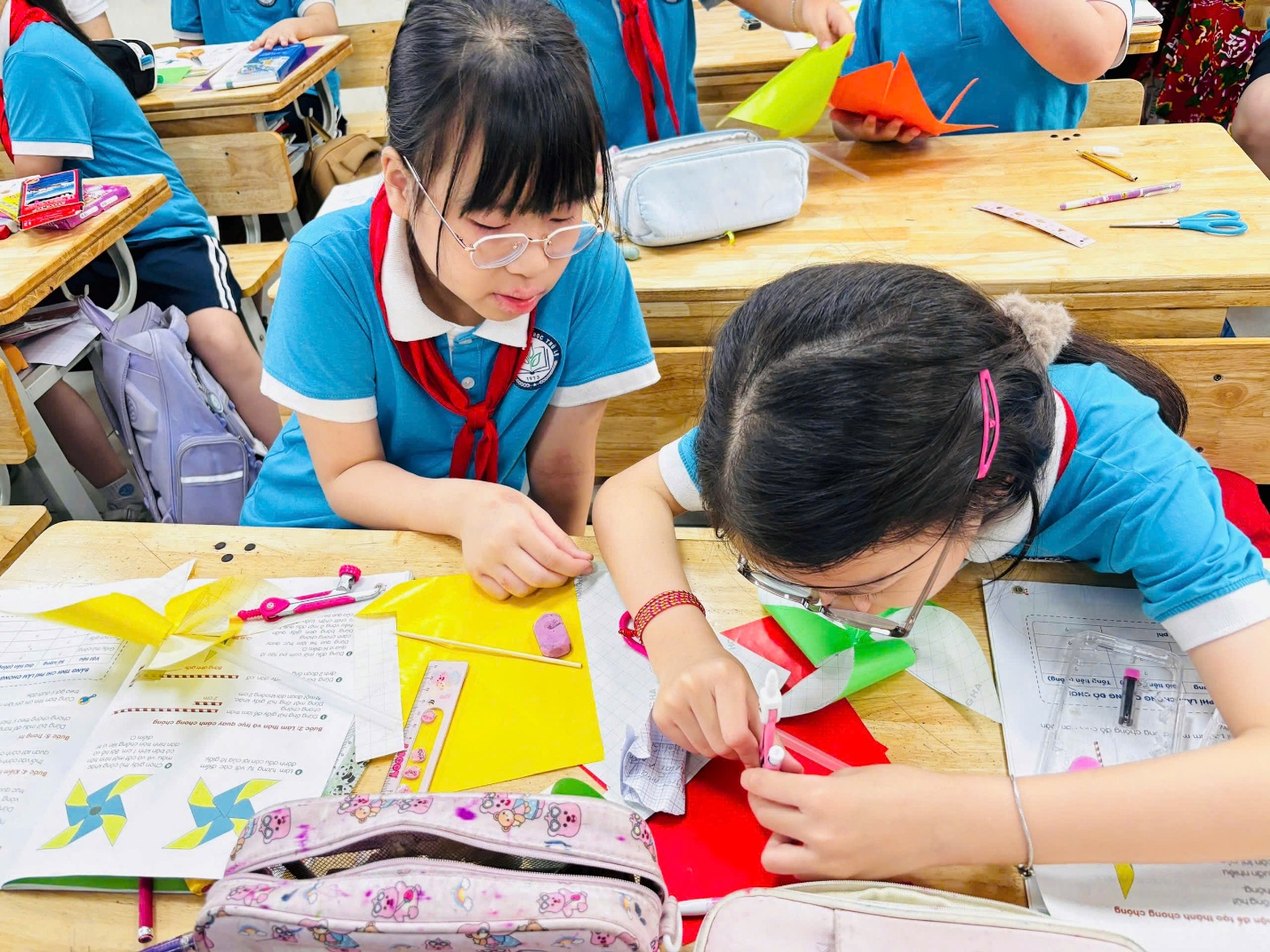 Trong không khí học tập sôi nổi, các bạn học sinh lớp 4A đã có một tiết học Công nghệ thật vui tươi và bổ ích với chủ đề “Làm chong chóng”. Đây không chỉ là một hoạt động thực hành đơn giản mà còn mang đến cho các em nhiều trải nghiệm thú vị.