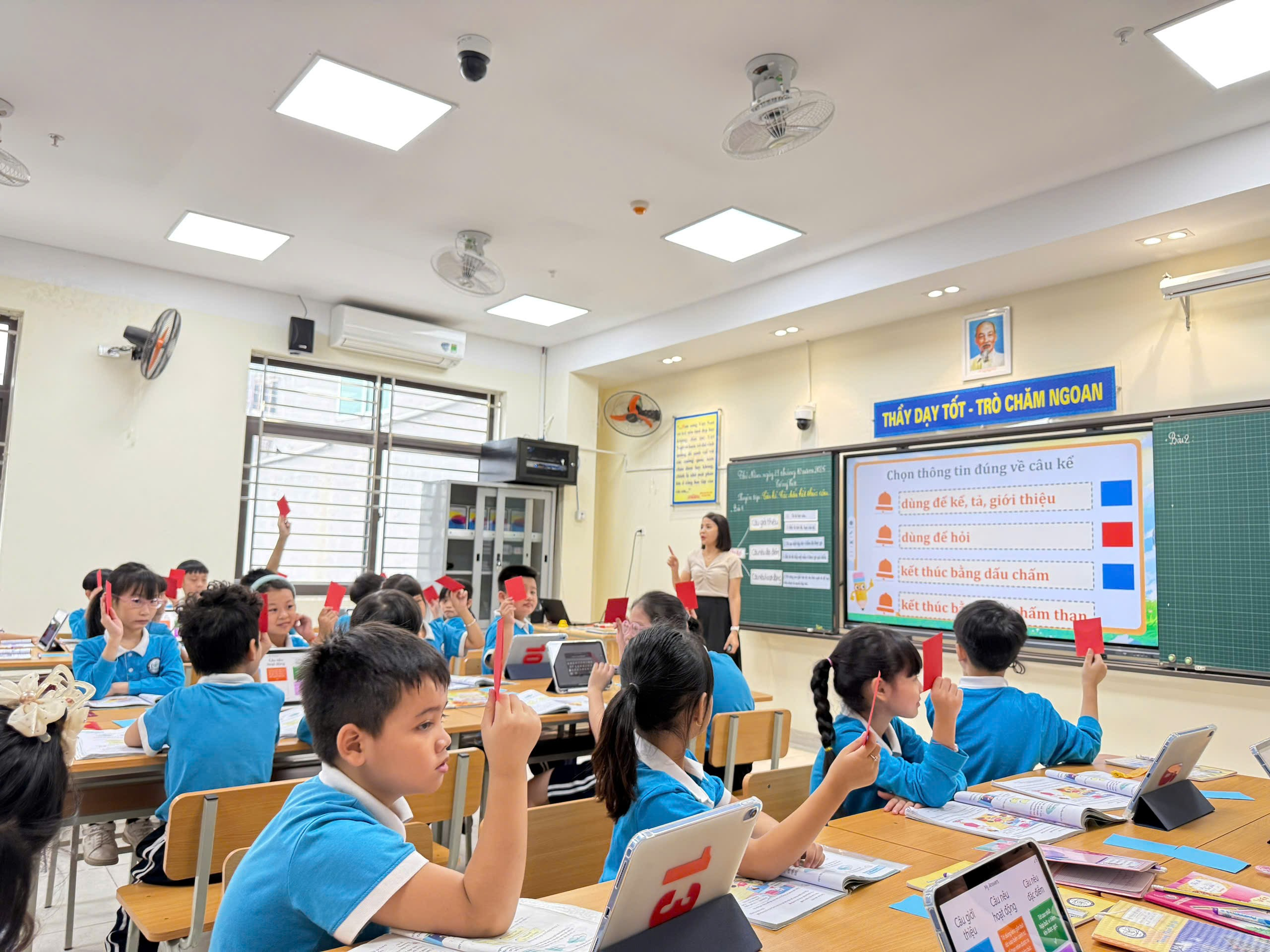 Tiết học “Câu kể và các dấu kết thúc câu” đã mang đến cho học sinh khối 3 những trải nghiệm học tập thật ý nghĩa. Các em không chỉ nắm chắc kiến thức ngữ pháp mà còn thêm yêu thích môn Tiếng Việt, say mê khám phá và mạnh dạn thể hiện bản thân. Việc ứng dụng iPad trong giờ học giúp các em cảm thấy mỗi tiết học đều là một hành trình vui vẻ, sáng tạo và đầy cảm hứng.