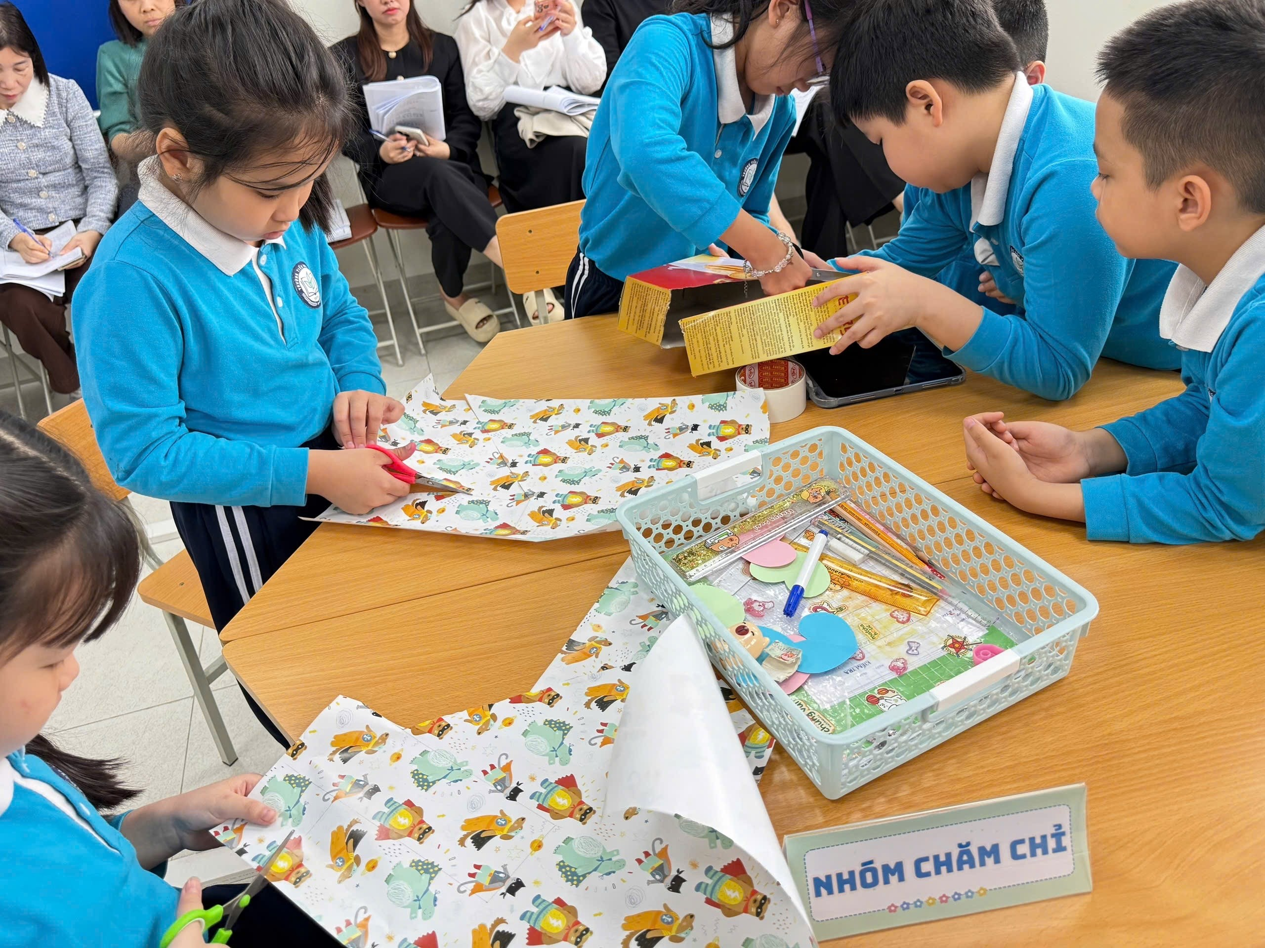 Trong tiết học STEM đầy hứng thú, học sinh lớp 3B Trường Tiểu học Thủ Lệ đã được tham gia hoạt động sáng tạo đồ dùng học tập từ những nguyên liệu tái chế quen thuộc. Đây là cơ hội để các em phát huy tư duy sáng tạo, khả năng làm việc nhóm và ý thức bảo vệ môi trường.