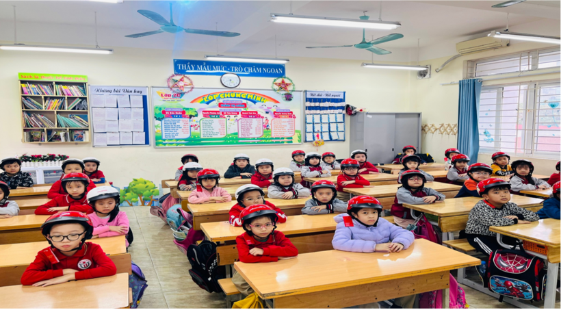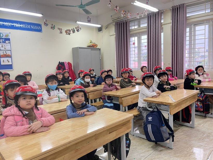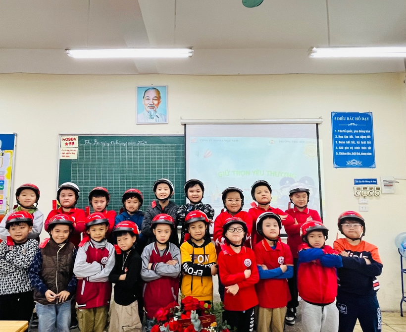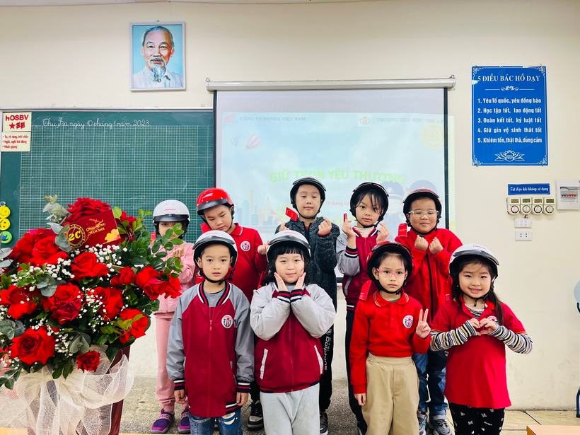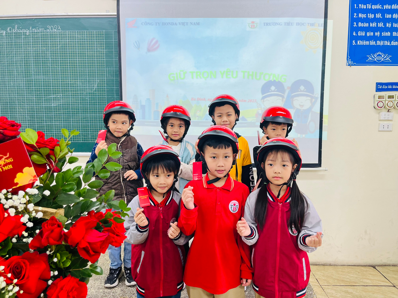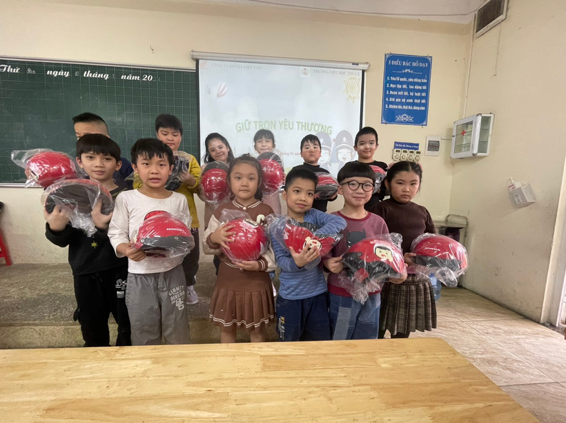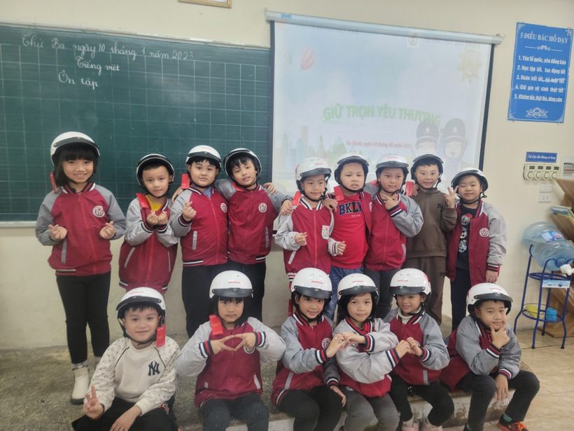 Trao tặng mũ bảo hiểm cho học sinh lớp 2