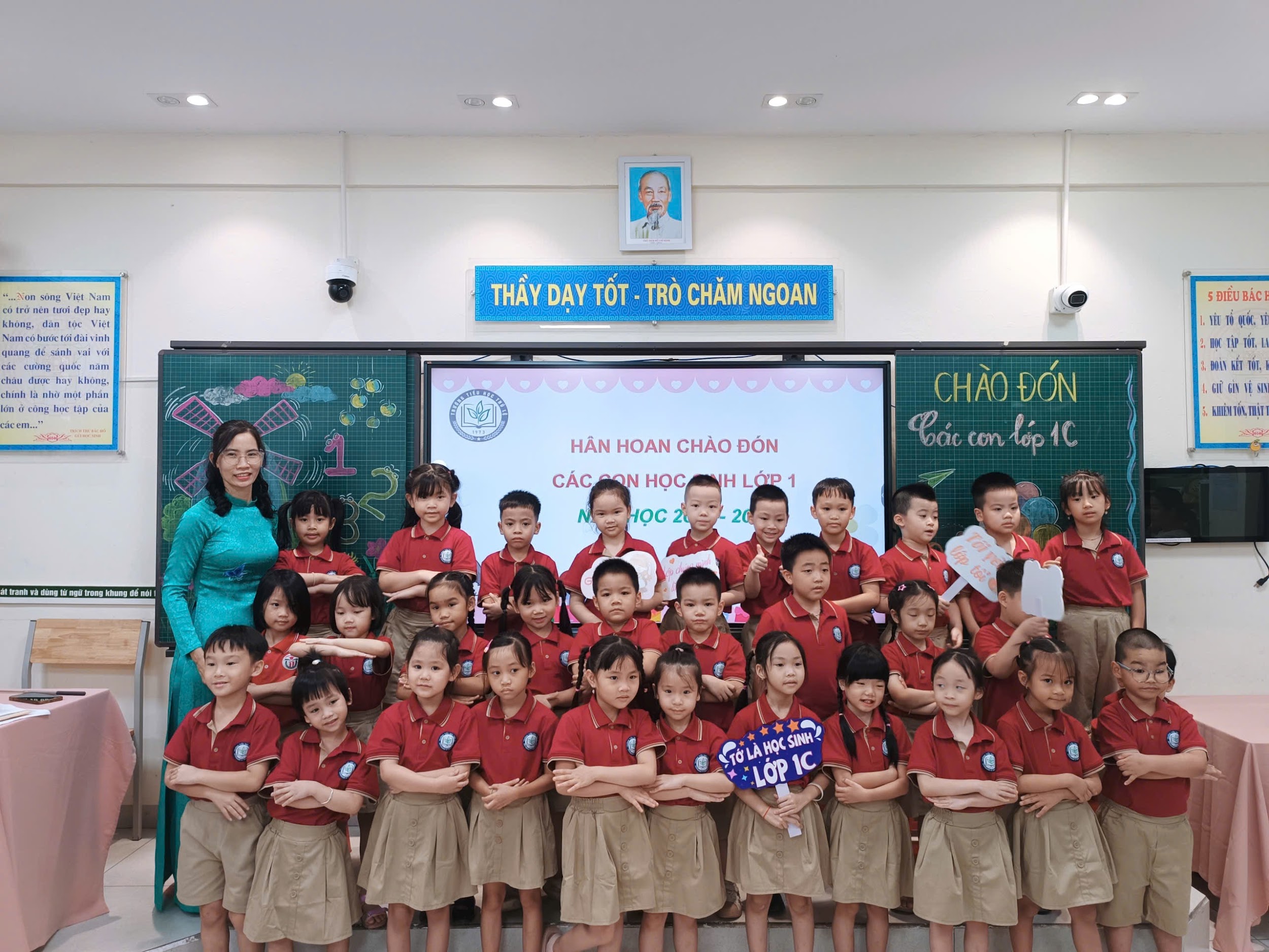 Học sinh lớp 1C cùng cô giáo Nguyễn Thị Thủy
