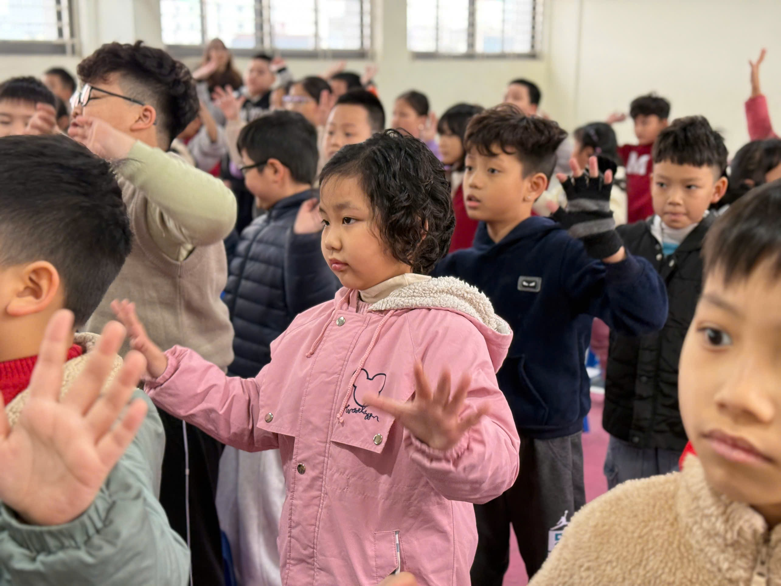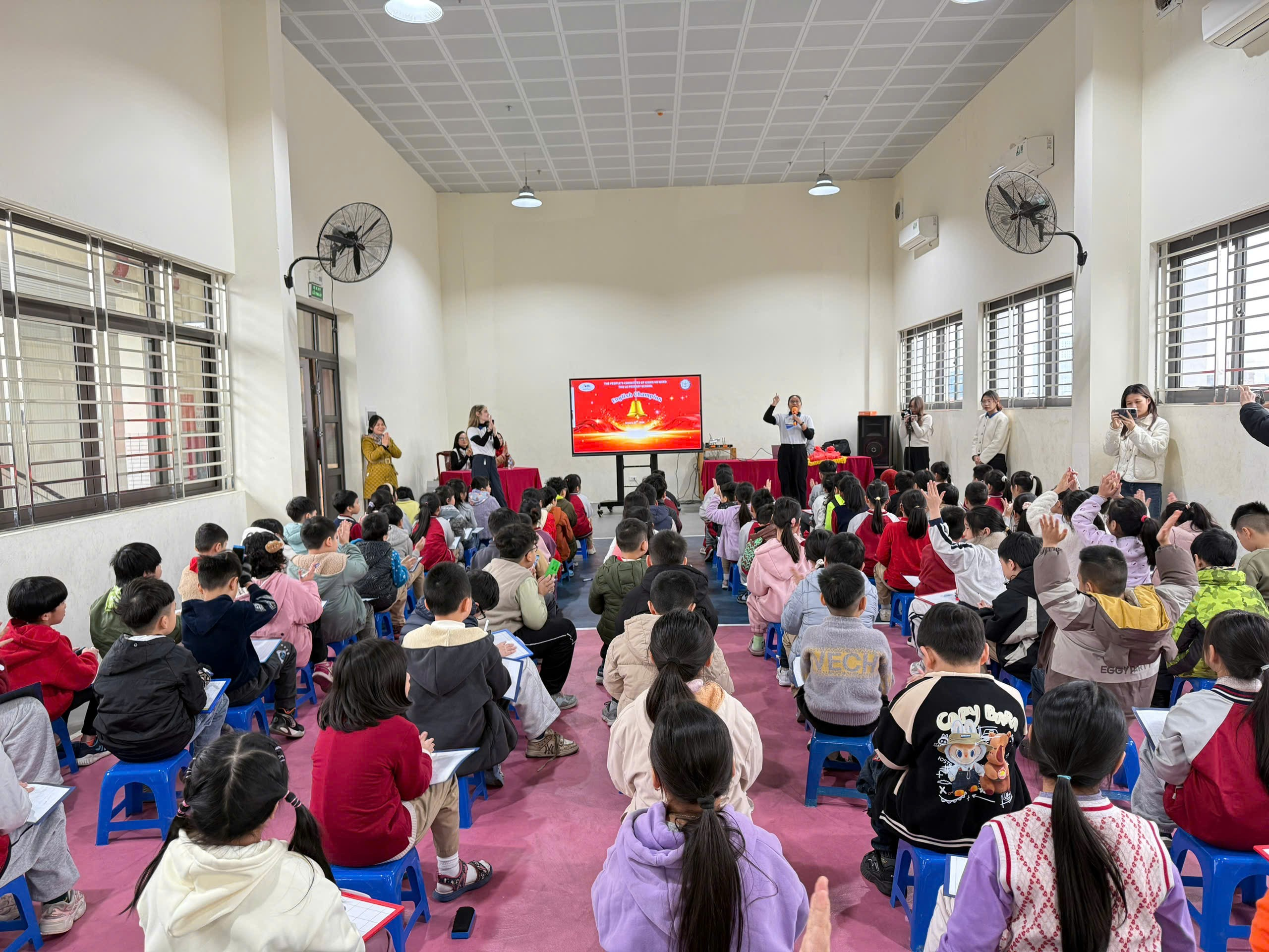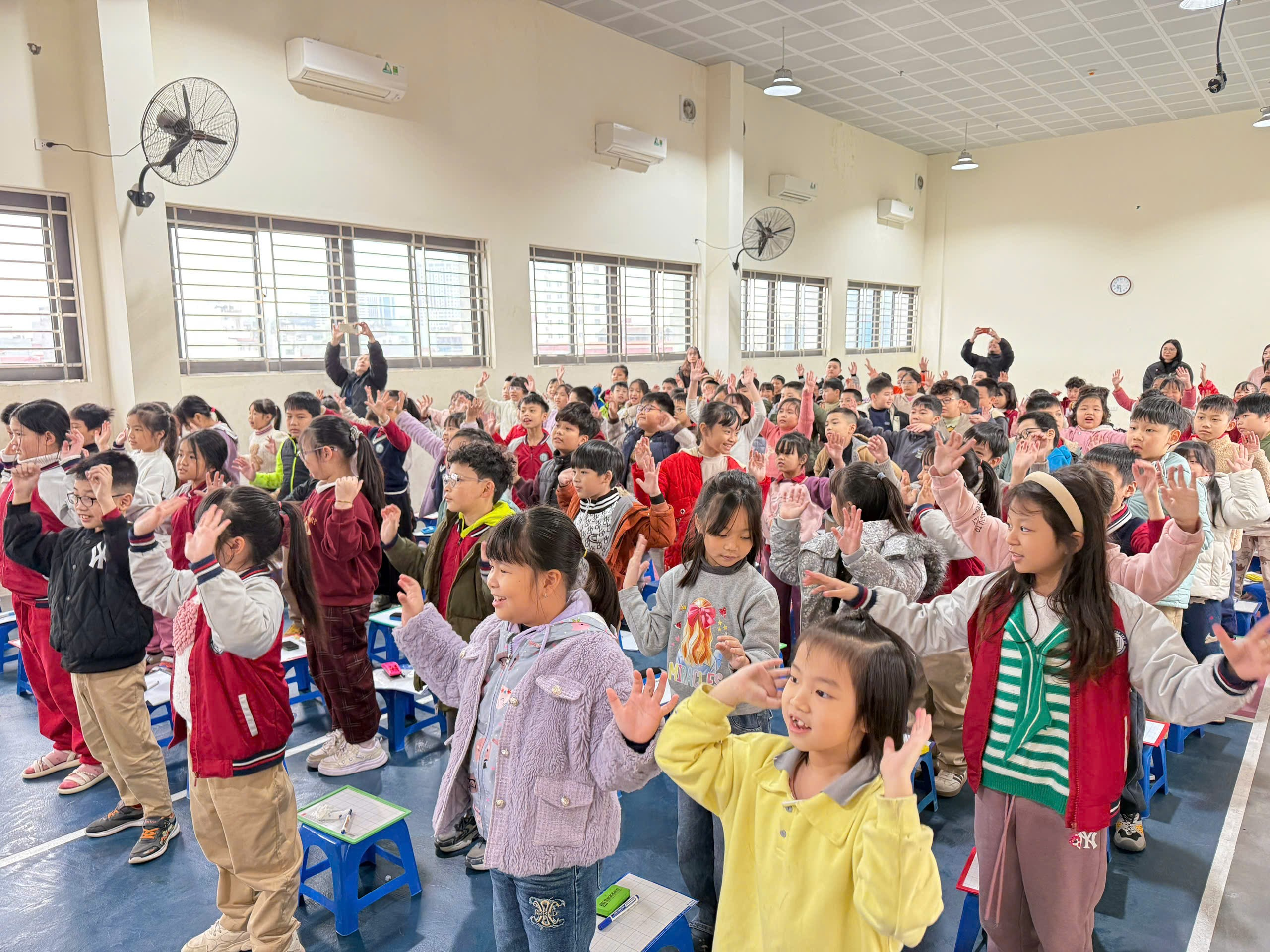Trong suốt cuộc thi, các em đã nỗ lực trả lời các câu hỏi tiếng Anh xoay quanh từ vựng, mẫu câu và kiến thức đã học. Không khí hội thi diễn ra sôi nổi, hào hứng và đầy kịch tính.