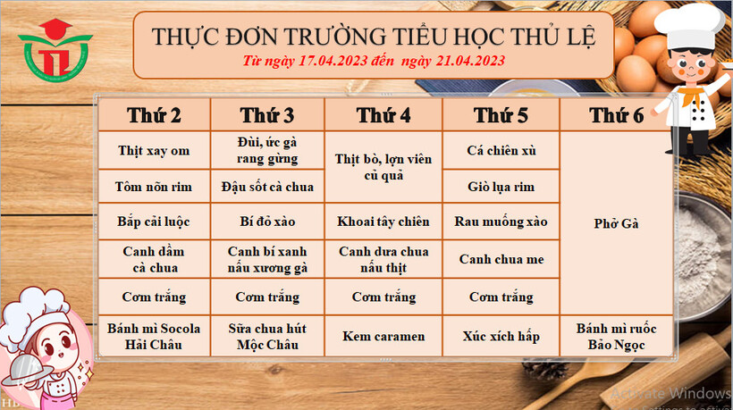Nhà trường gửi tới các bậc PH và các con HS thực đơn tuần 3 tháng 4/2023. Trân trọng!