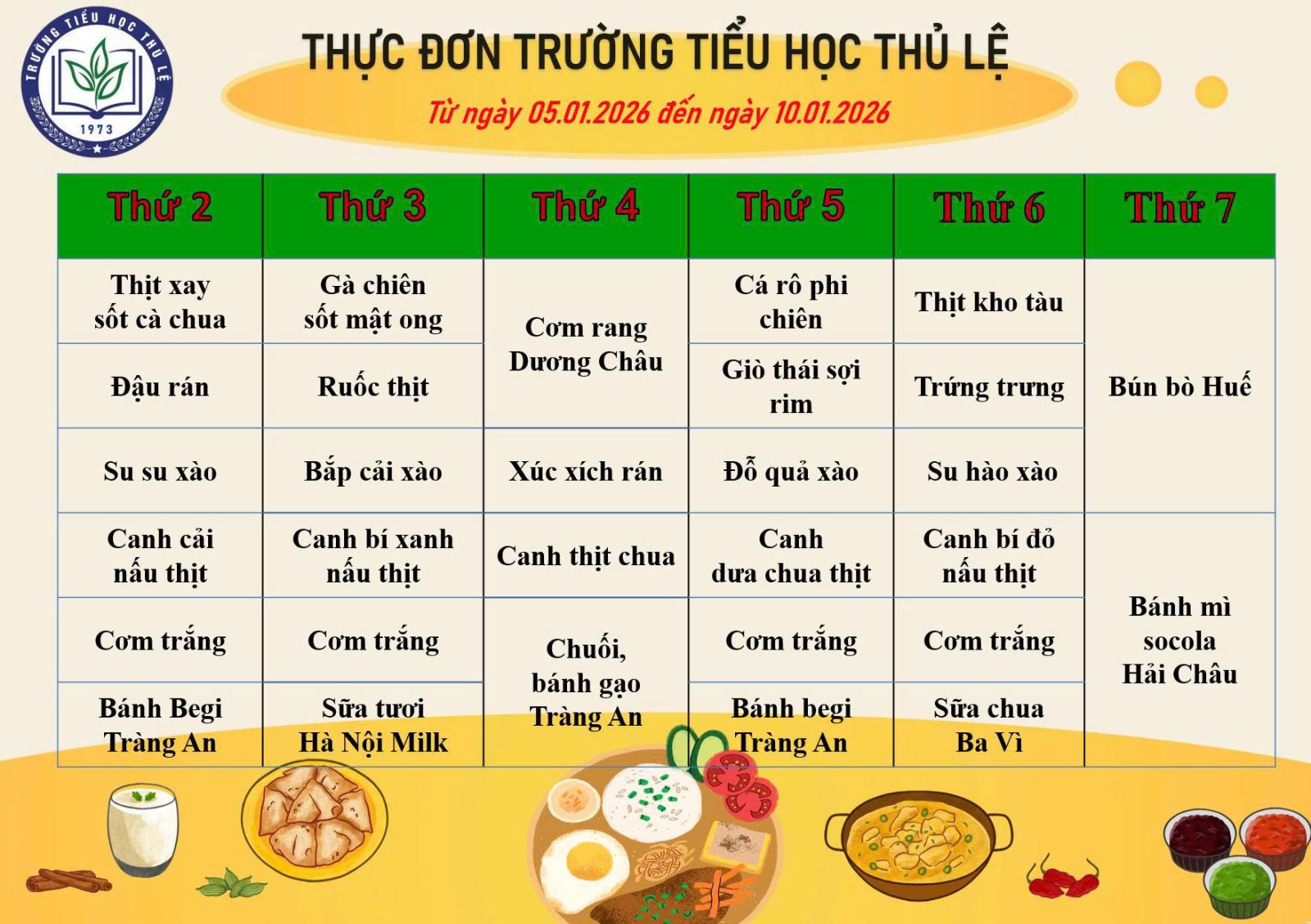 Nhà trường gửi tới các bậc PH và các con HS thực đơn tuần 2 tháng 1/2026. Trân trọng!