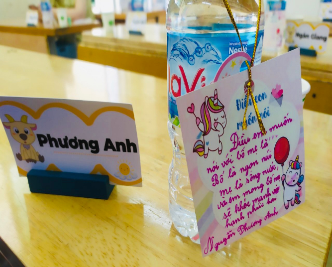 Tuyệt vời hơn, trên bàn con ngồi là những điều con muốn nói và lời yêu thương từ chính con mình. Cảm ơn các bậc phụ huynh đã truyền lửa yêu thương và luôn đồng hành cùng cô giúp cho các con có những buổi trải nghiệm, những kỹ năng sống cần thiết nhất!