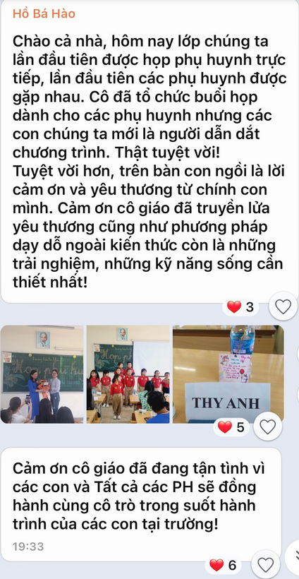 Sau buổi họp.những dòng tin nhắn của phụ huynh lớp 2C gửi đến cảm ơn cô giáo và các bác trong BPH!