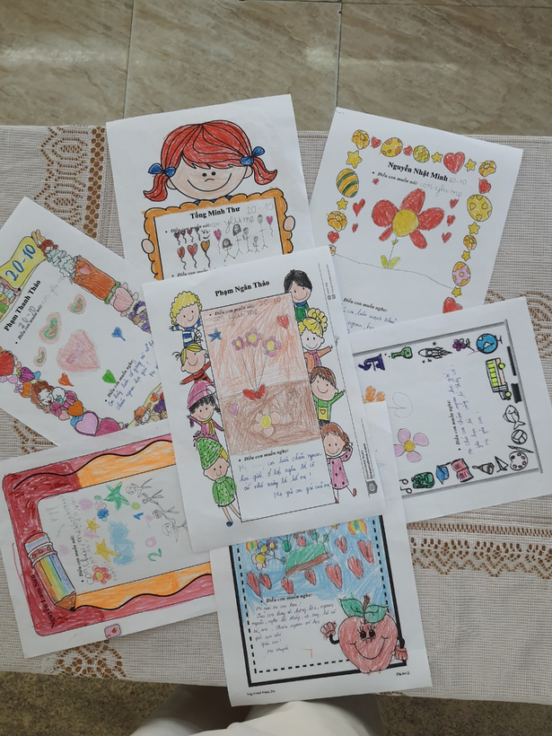 Đặc biệt, trong buổi gặp mặt này, cha mẹ cũng sẽ thấu hiểu hơn về con của mình thông qua những bức tranh, những dòng chữ với nét viết còn nguệch ngoạc. Và hơn thế những lời yêu thương, khuyến khích, động viên của cha mẹ cũng được gửi gắm tới các con qua tấm thiệp xinh xắn. Mong sao đến cuối năm học, khi con biết đọc, con sẽ cảm nhận được sự quan tâm, yêu thương của cha mẹ đối với mình.