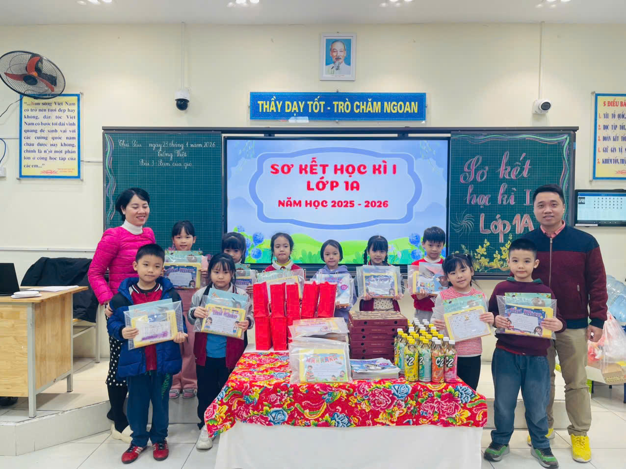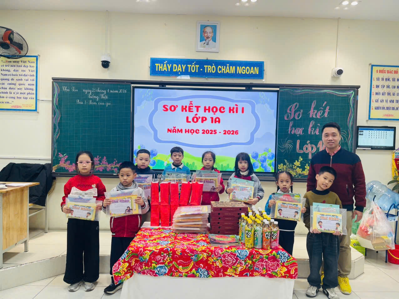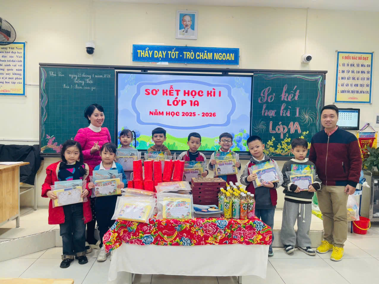 Buổi sơ kết học kì I của lớp khép lại trong niềm vui, sự tự hào và quyết tâm phấn đấu của cô và trò, hứa hẹn một học kì II với nhiều niềm vui và thành công.