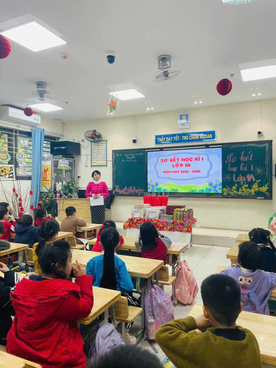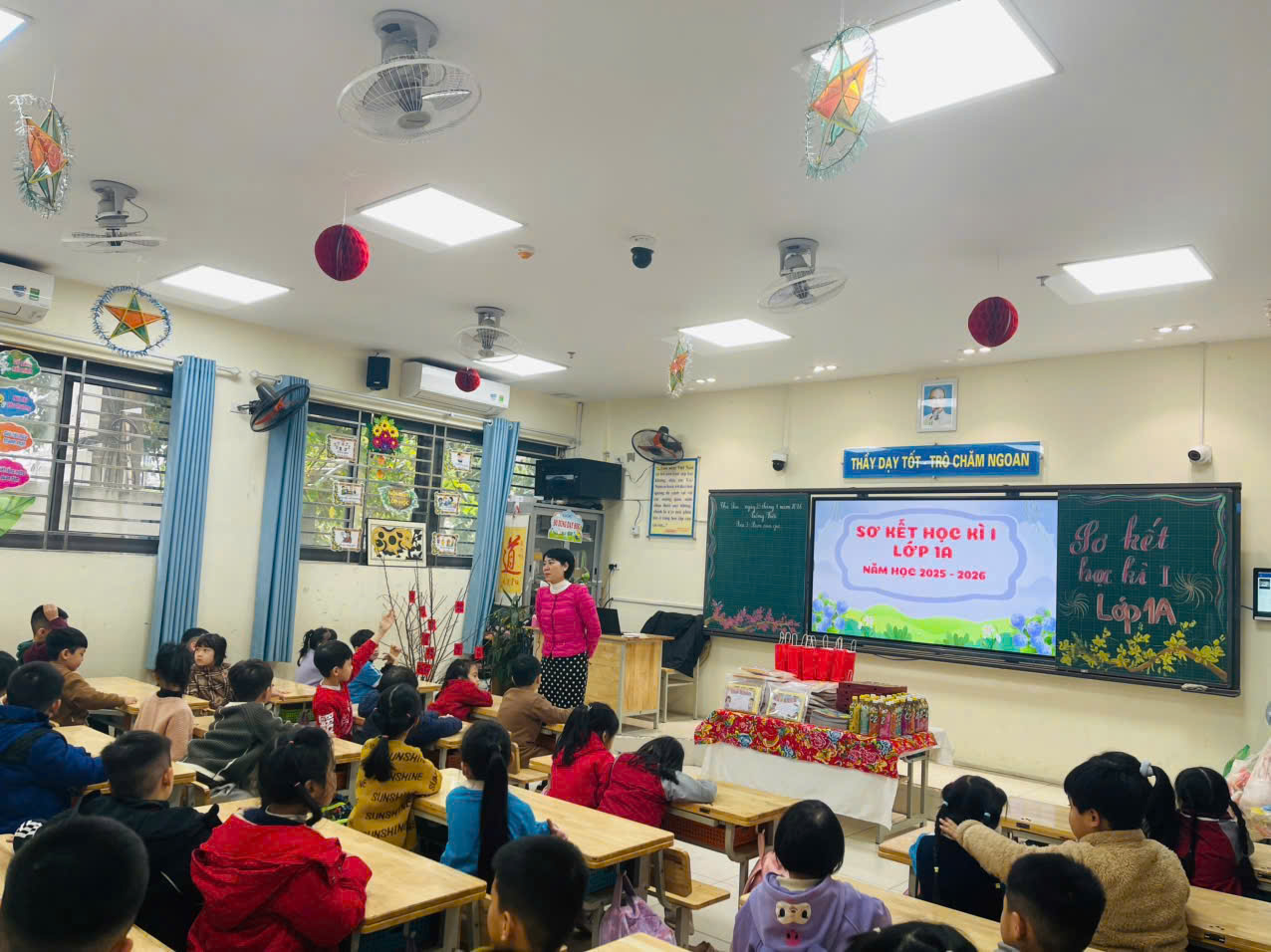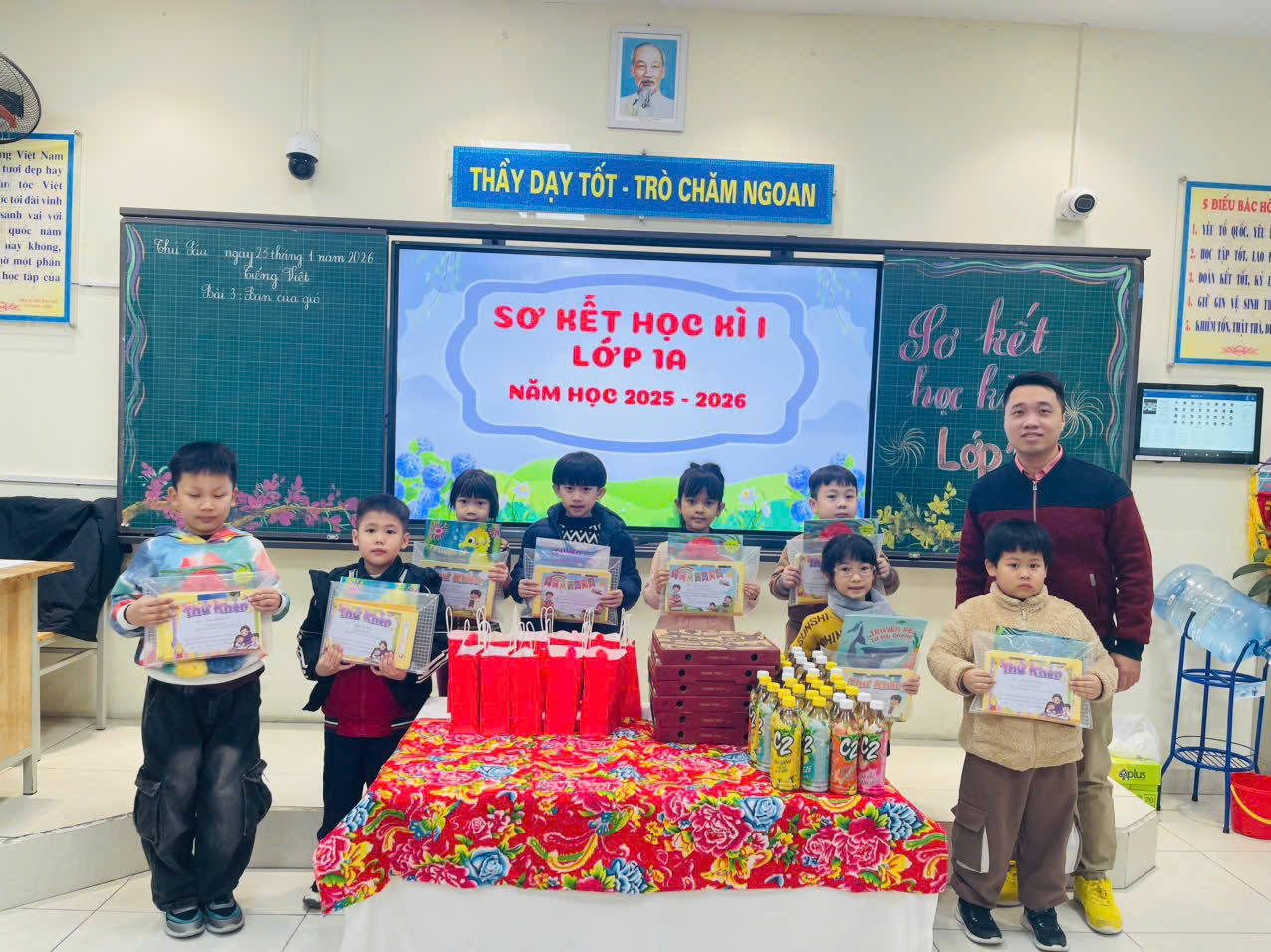 Buổi sơ kết học kì I của lớp khép lại trong niềm vui, sự tự hào và quyết tâm phấn đấu của cô và trò, hứa hẹn một học kì II với nhiều niềm vui và thành công.