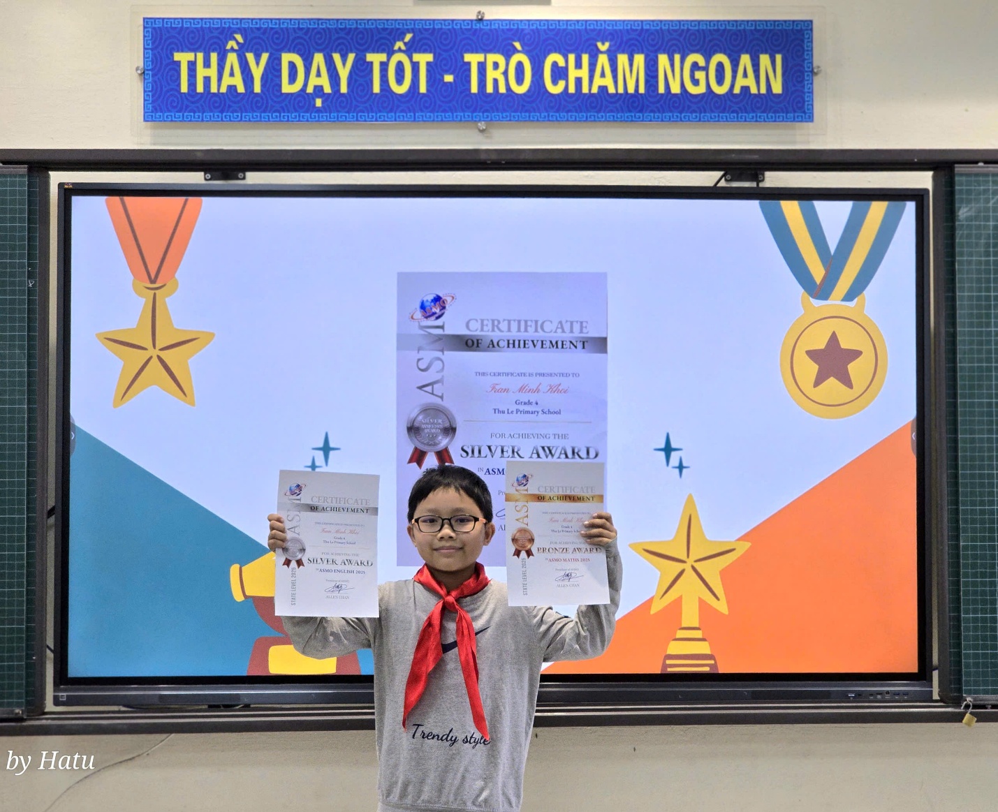 Tuyên dương bạn Trần Minh Khôi đạt giải ASMO vòng 1 môn Toán và Tiếng Anh