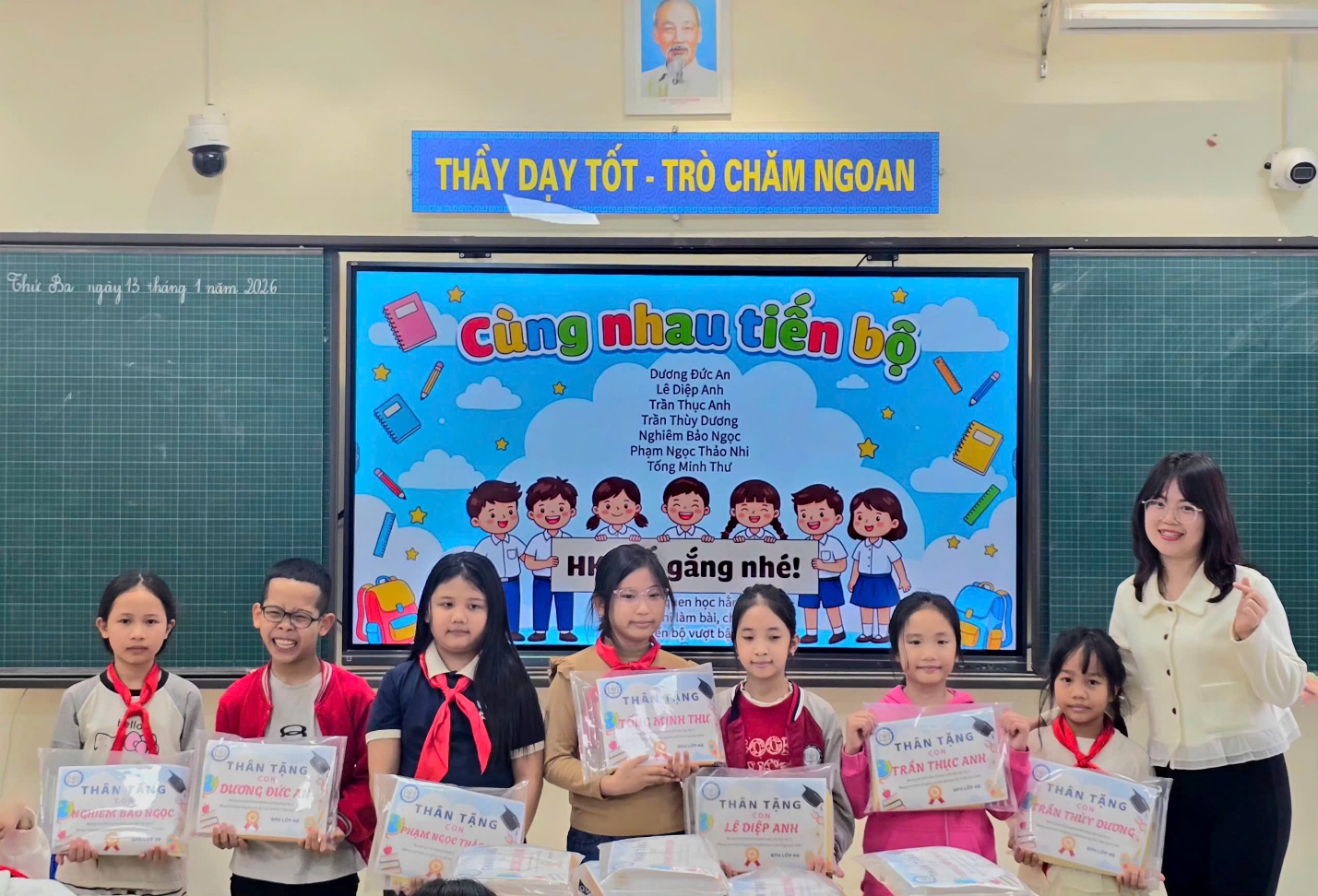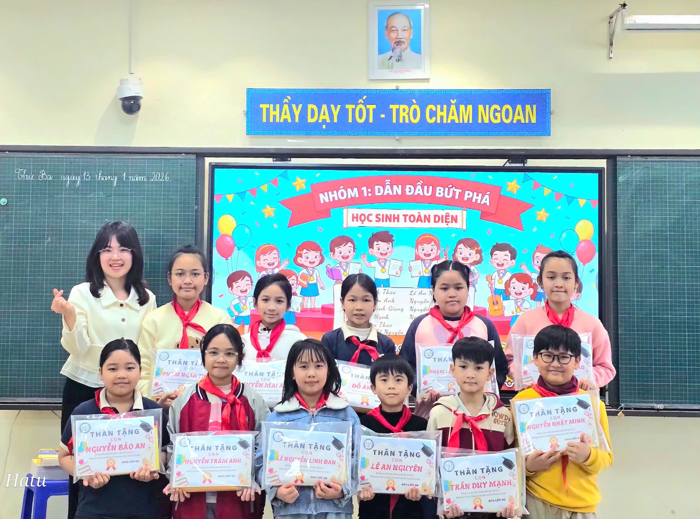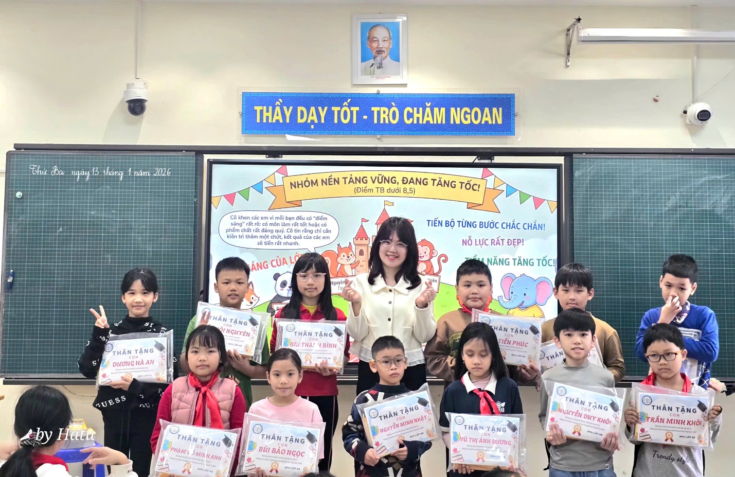 Tại buổi sơ kết, các con được tổng hợp kết quả học tập, nề nếp và tinh thần tham gia các hoạt động của lớp. Nhiều bạn có tiến bộ rõ rệt trong ý thức tự giác, sự mạnh dạn khi phát biểu, tinh thần hợp tác trong học nhóm và thái độ tích cực trong các giờ học. Cô giáo chủ nhiệm đã sử dụng AI để tạo ra những hình ảnh nhận xét về các nhóm học sinh vừa đẹp mắt, vừa ý nghĩa. Đó cũng là món quà nhỏ, lời động viên của cô dành cho các con học sinh yêu quý.
