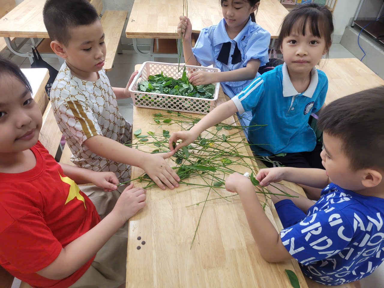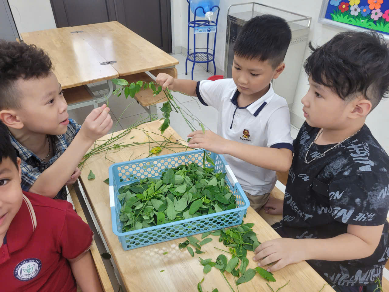 Không chỉ dừng lại ở các hoạt động bảo vệ môi trường, tham gia các trò chơi dân gian,các em còn được hướng dẫn thực hành nhặt rau, phụ giúp gia đình những công việc nhỏ nhưng đầy ý nghĩa. Những hành động đơn giản nhưng thể hiện sự yêu thương và trách nhiệm.