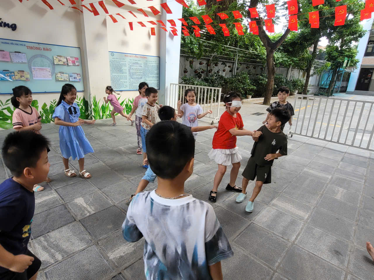 Sau giờ sáng tạo, các bạn nhỏ được tham gia nhiều trò chơi dân gian truyền thống như: Bịt mắt bắt dê , rồng rắn lên mây,mèo đuổi chuột… trò chơi mang lại những tiếng cười sảng khoái và thử thách sự khéo léo,thể hiện tinh thần đoàn kết…giúp các em rèn luyện phản xạ và sự phối hợp nhóm.