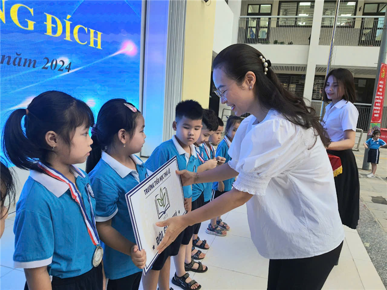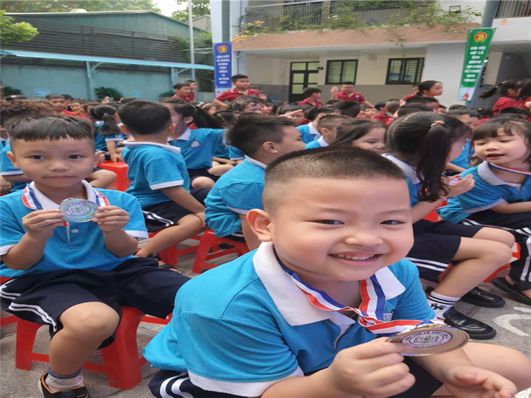 Giải đấu không chỉ dừng lại ở việc các con có được một sân chơi lành mạnh, bổ ích mà quan trọng hơn cả là các con đã thể hiện được tinh thần thể dục, thể thao, tinh thần đồng đội, là nền tảng giúp các con sau này chinh phục mọi thử thách, vượt qua mọi khó khăn. Các con vượt qua và chiến thắng. Ban giám hiệu cùng các thầy cô trao giải cho các vận động viên lớp 1B.