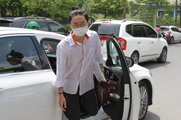 | Nhiều phụ huynh đưa con em đến điểm thi tốt nghiệp bằng ô tô để tránh nắng, nóng. |