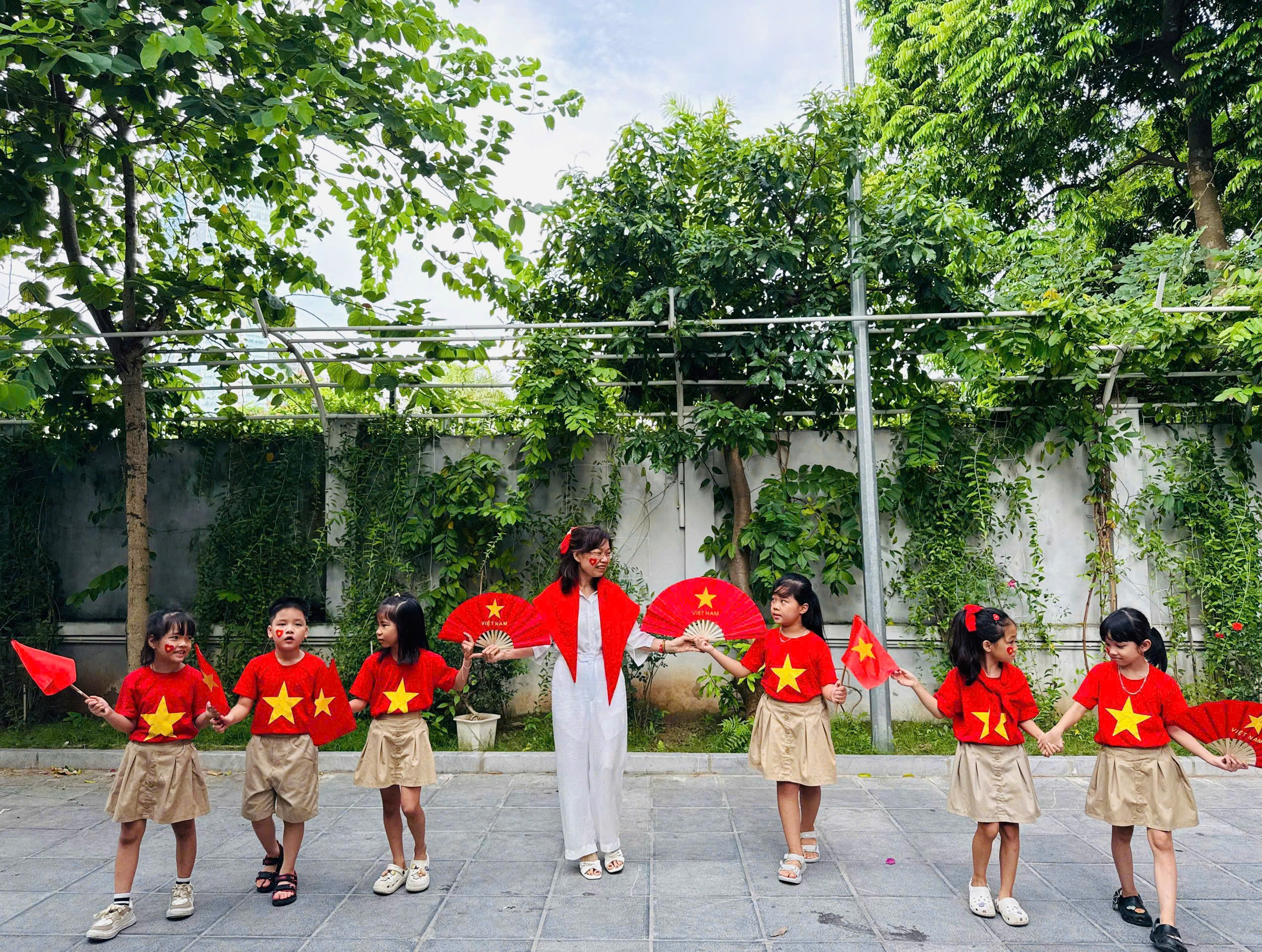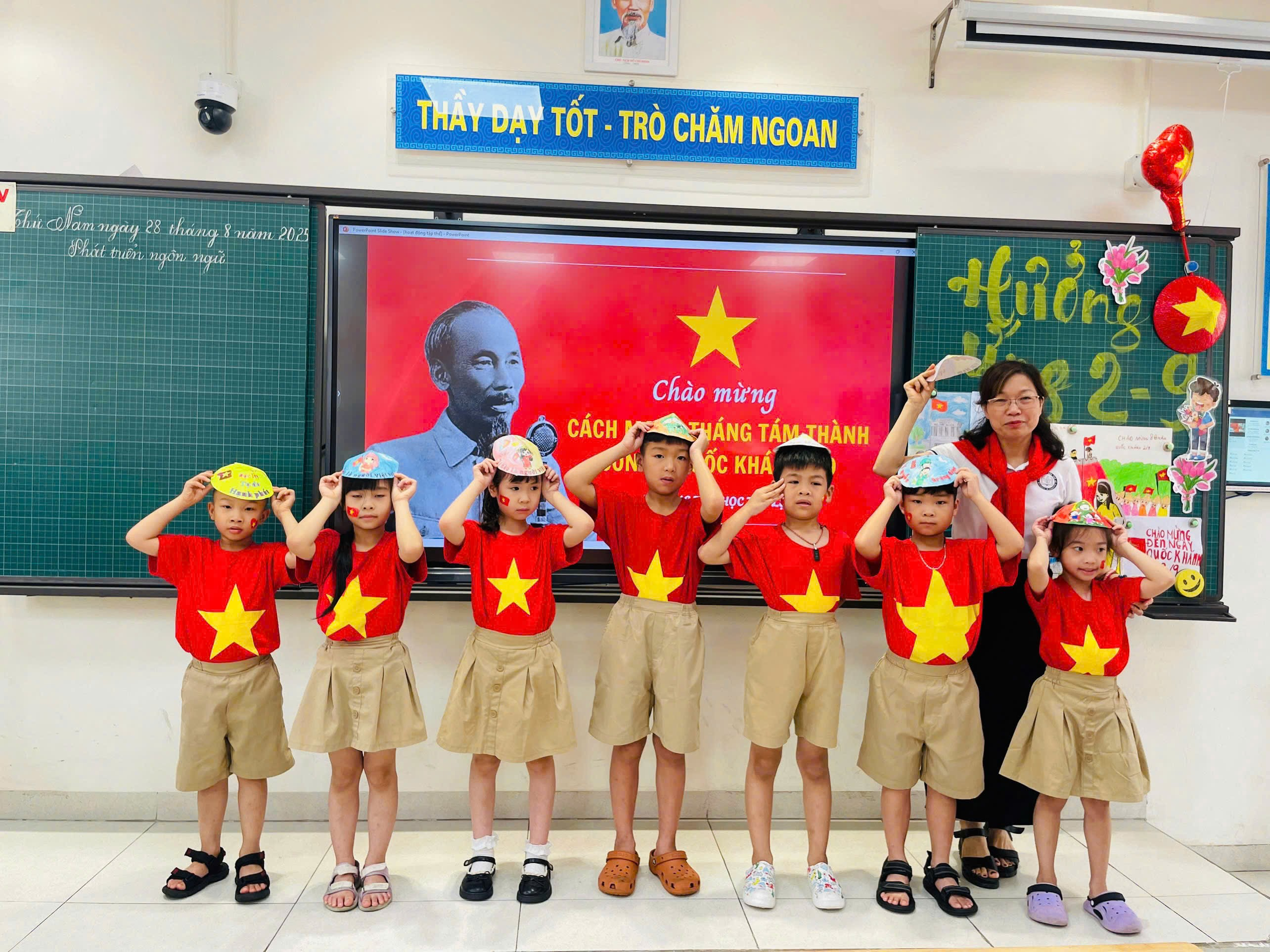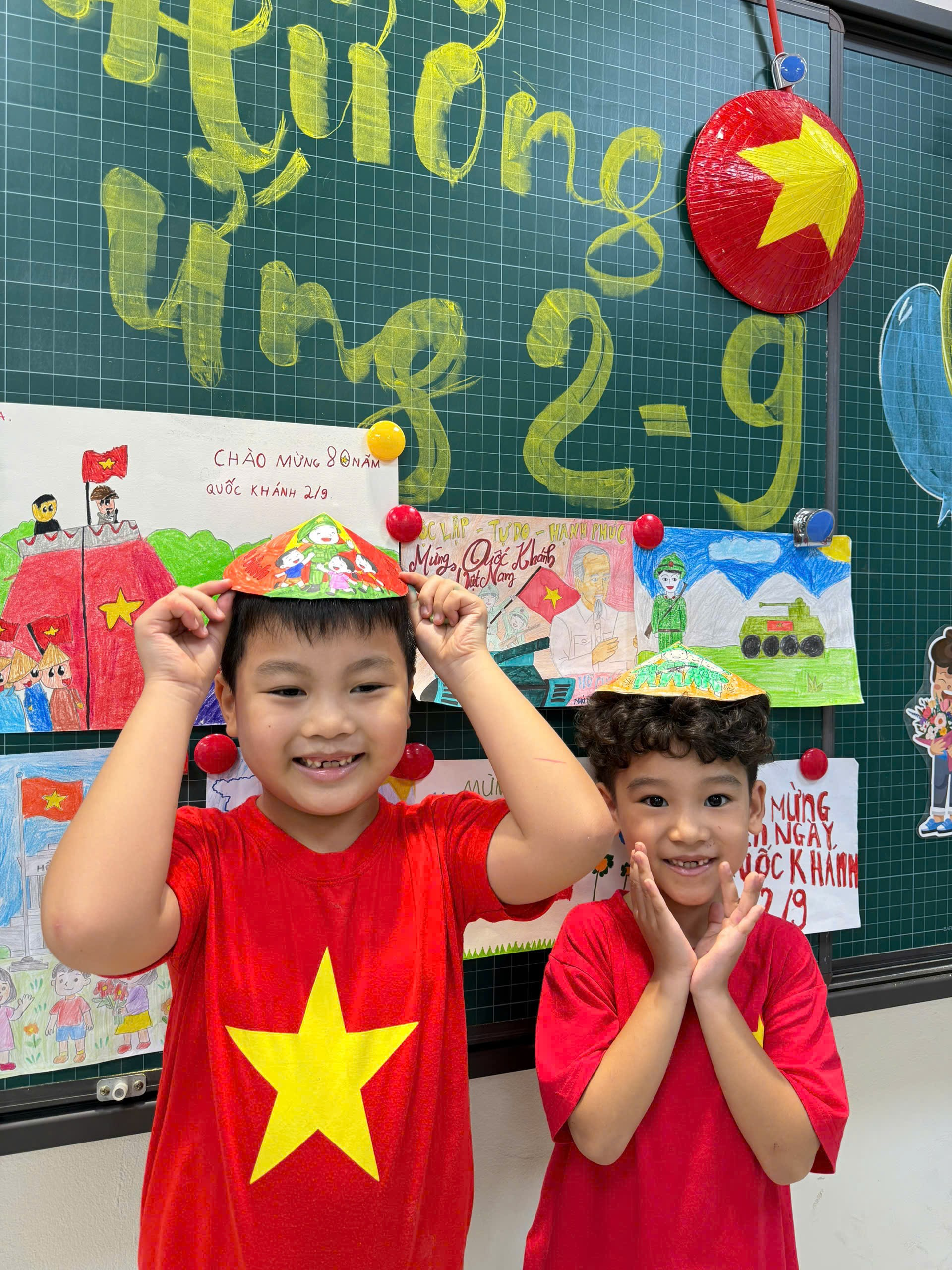 Mỗi chiếc nón đều mang một ý tưởng riêng, phản ánh sự sáng tạo và tình cảm của các em. Khi đội trên đầu những “tác phẩm” của mình, gương mặt các bạn nhỏ ánh lên niềm vui, xen lẫn chút tự hào. Hoạt động không chỉ rèn luyện sự khéo léo, tinh thần hợp tác, mà còn gieo vào tâm hồn các em hạt mầm yêu nước – bắt đầu từ những điều nhỏ bé nhất.