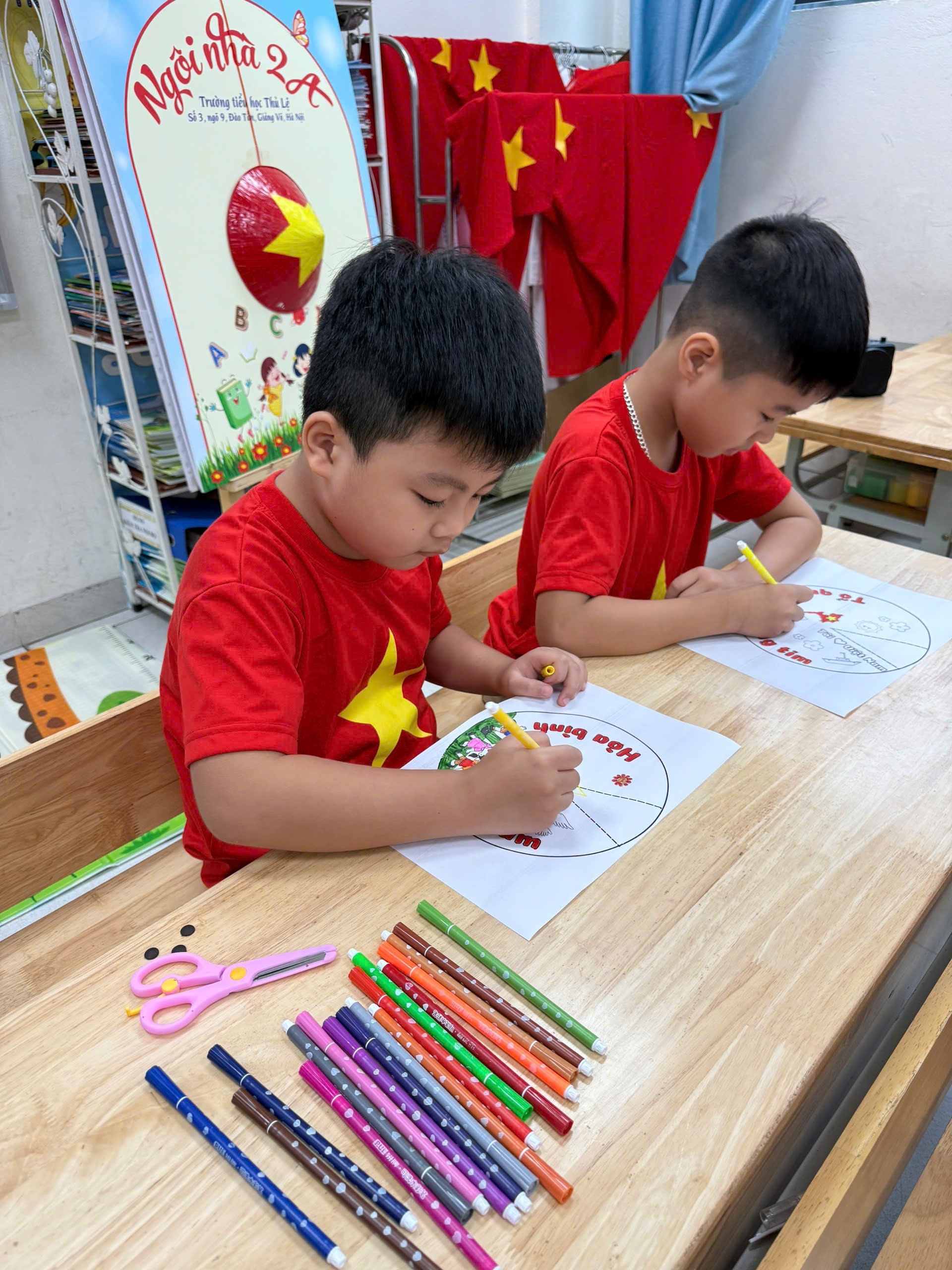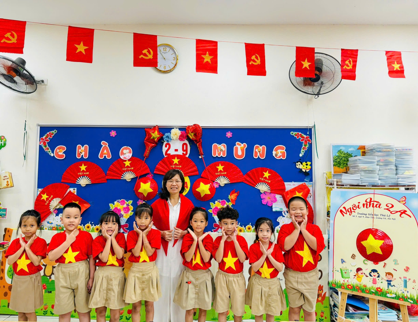 Hòa trong không khí tưng bừng của cả nước kỷ niệm 80 năm Ngày Quốc khánh 2/9 (1945 – 2025), cô và trò lớp 2A – Trường Tiểu học Thủ Lệ đã tổ chức nhiều hoạt động ý nghĩa nhằm bày tỏ tình yêu quê hương, đất nước và niềm tự hào dân tộc. Trong sắc đỏ thắm rực rỡ, các em học sinh cùng cô giáo trang trí lớp học, vẽ tranh, cất cao tiếng hát với những giai điệu cách mạng. Những nụ cười hồn nhiên, ánh mắt trong trẻo và bàn tay nhỏ bé đã góp phần tạo nên một không gian ngập tràn niềm vui và tình yêu quê hương, đất nước ❤