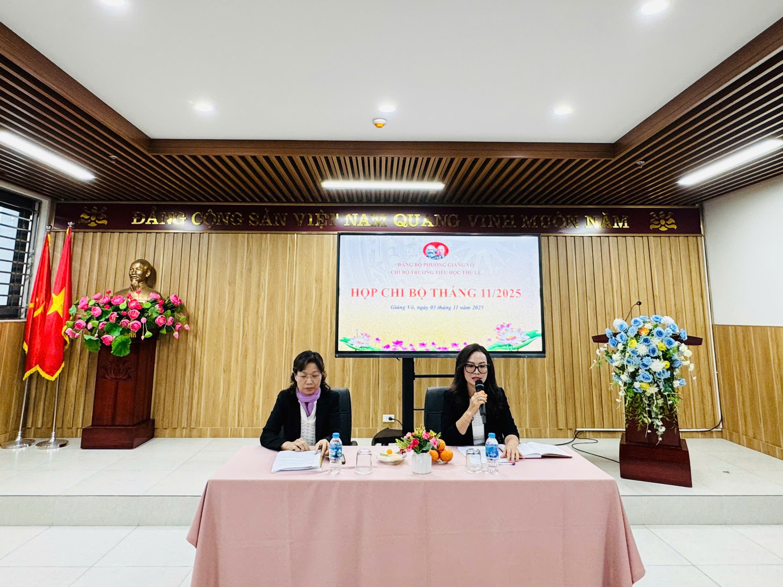 Chi bộ Trường Tiểu học Thủ Lệ tổ chức sinh hoạt thường kỳ tháng 11 năm 2025 trong không khí dân chủ, đoàn kết, nghiêm túc.