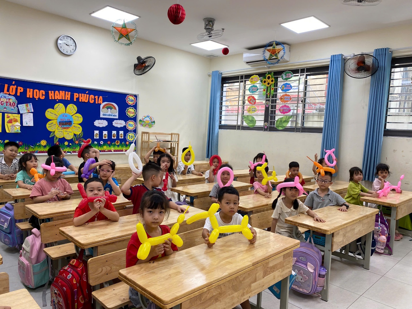 Khối 1 tham gia hoạt động “tạo hình bằng bóng bay”