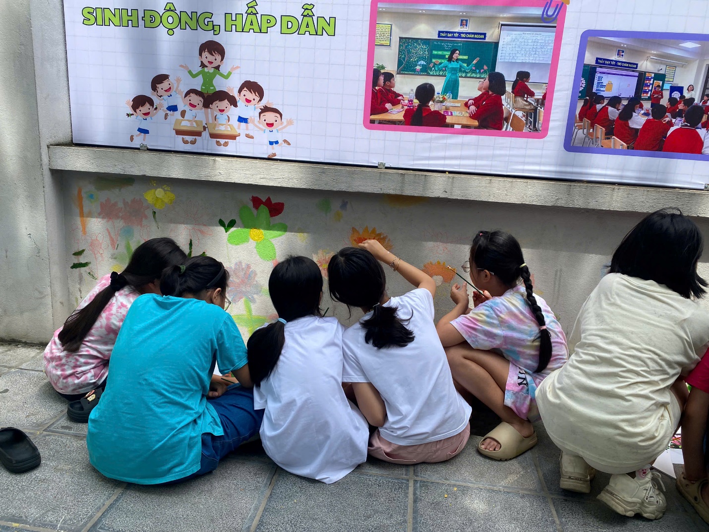 Khối 5 tham gia hoạt động “ Vẽ tranh tường”