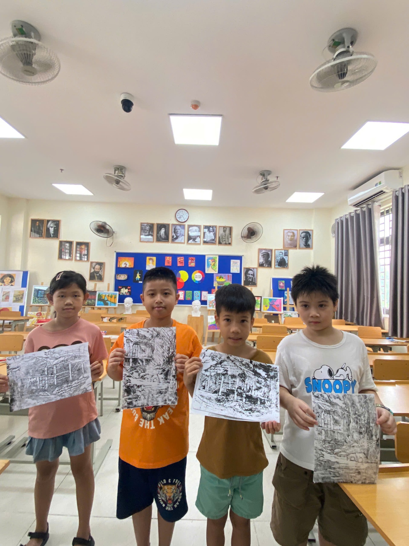 Khối 4 hứng thú tham gia hoạt động ‘’In tranh khắc gỗ’’