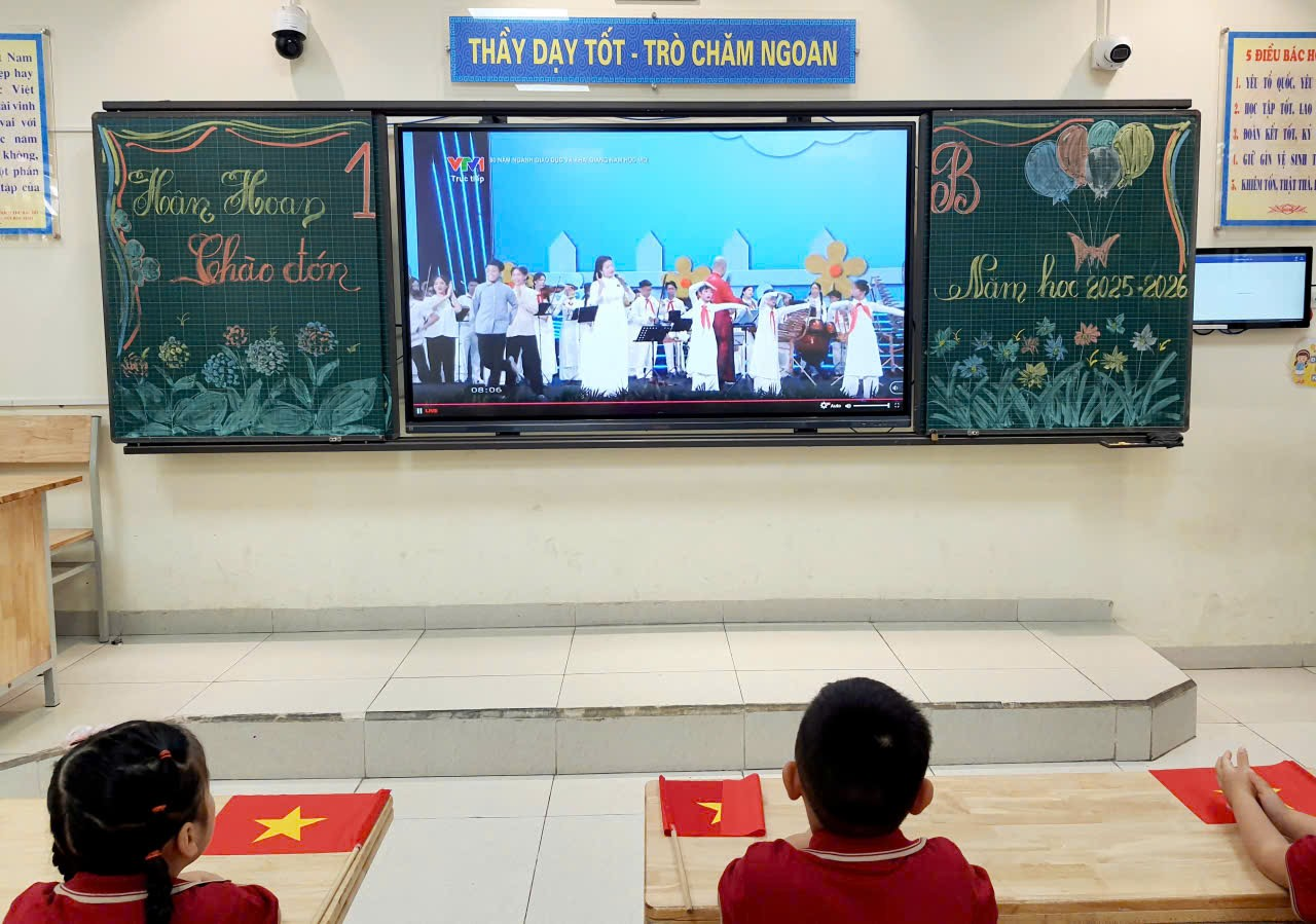 Sau phần lễ khai giảng đầy xúc động và trang nghiêm tại Trường Tiểu học Thủ Lệ, cô và trò lớp 1B cùng toàn thể học sinh trong trường đã cùng nhau tham gia tiếp sóng trực tiếp Lễ Khai giảng Toàn quốc năm học 2025–2026, do Bộ Giáo dục và Đào tạo tổ chức. Đây là hoạt động có ý nghĩa đặc biệt, nhằm kết nối các nhà trường trên cả nước trong một sự kiện chung – ngày hội lớn nhất của ngành Giáo dục, ngày toàn dân đưa trẻ đến trường.
