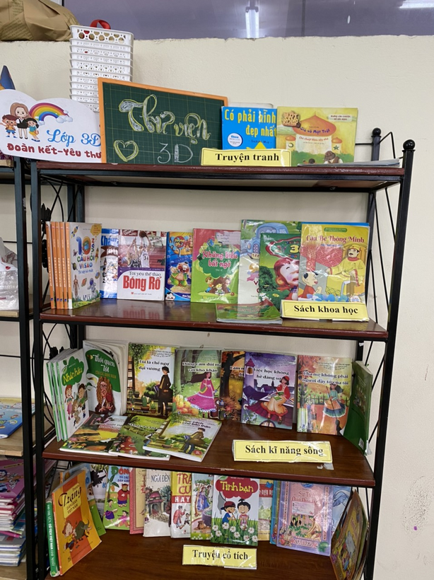 Thư viện trường học là một trong những phòng chuyên môn quan trọng,  nơi hội tụ kiến thức, tri thức của loài người. Giúp cho thầy và trò không chỉ dạy tôt , học tốt mà còn mở mang trí óc, bồi đắp nhân cách, xây dựng nền tảng văn hoá cá nhân. Thư viện luôn được xem là trái tim tri thức, là địa điểm để cán bộ, giáo viên  nhân viên và học sinh nghiên cứu, trao đổi kiến thức. Chính vì vậy ở mỗi lớp học đều có những góc thư viện nhỏ như những “ Thư viện di động”, các con học sinh có thể đọc sách vào giờ ra chơi và tiết học thư viện hằng tuần. Để xây dựng những góc thư viện như vậy, các con học sinh đã mang những cuốn sách yêu thích của mình đến góc thư viện ở lớp để cùng chia sẻ và giới thiệu cho các bạn những cuốn sách mà mình yêu thích, từ những việc làm nhỏ đó viêc đọc sách trở nên thú vị và gây dựng cho các con học sinh yêu thích việc đọc sách hơn.
