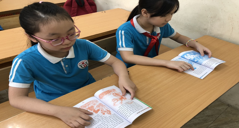 Các con học sinh đọc những cuốn sách hay tại thư viện của lớp vào giờ ra chơi