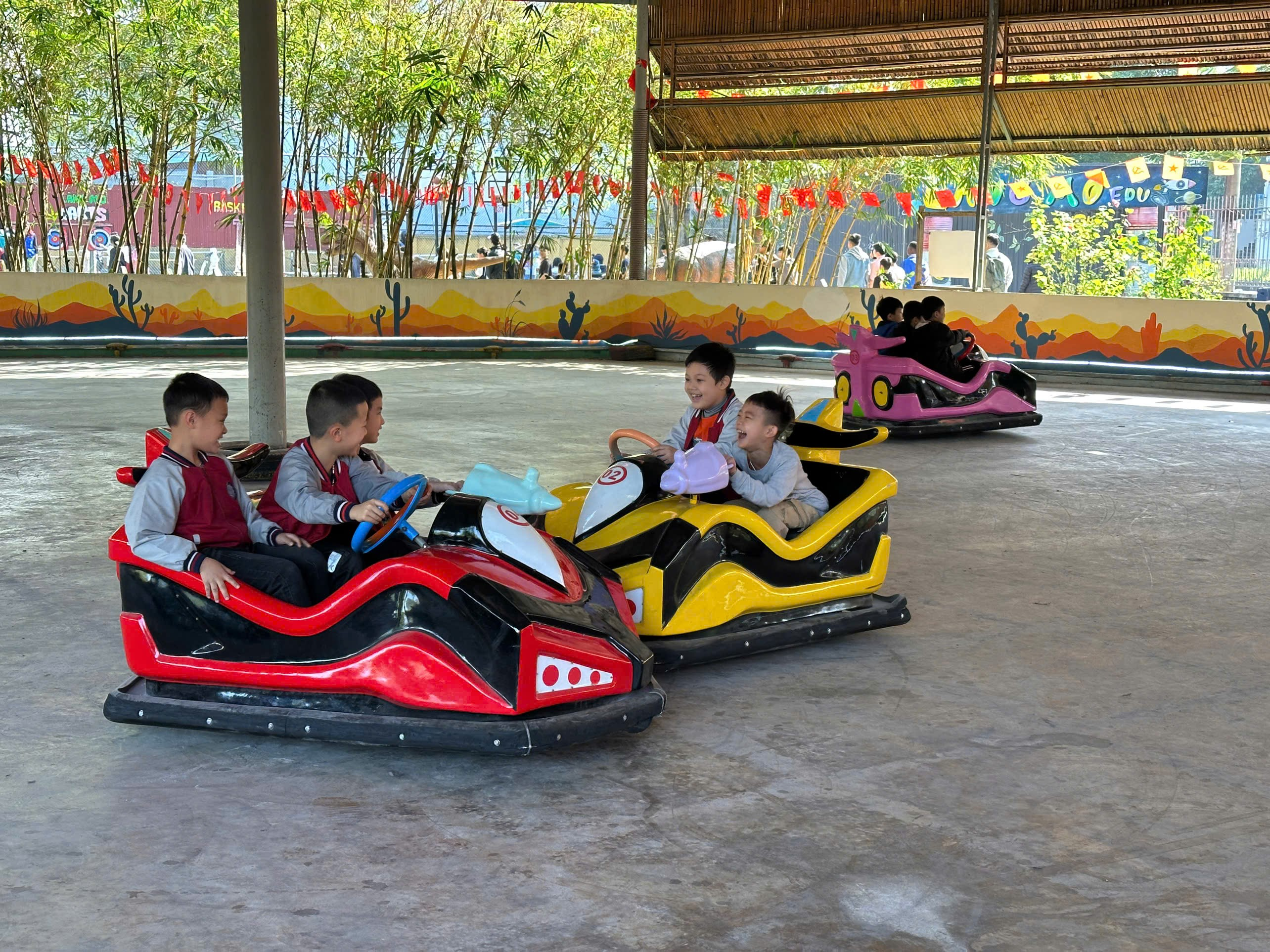 🚗💥 Đi xe đụng – Một trong những hoạt động khiến các bạn nhỏ phấn khích nhất! Các bạn được tự tay điều khiển những chiếc xe đầy màu sắc, thoải mái “xoay – né – va nhẹ” trong tiếng cười giòn tan. Hoạt động không chỉ mang lại cảm giác vui nhộn mà còn giúp các con rèn kỹ năng điều khiển phương tiện và khả năng phản xạ nhanh.