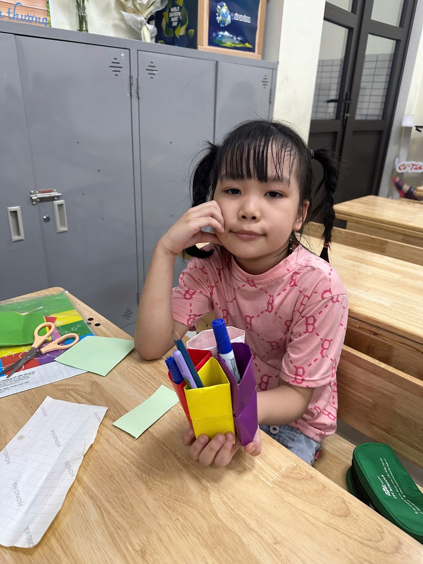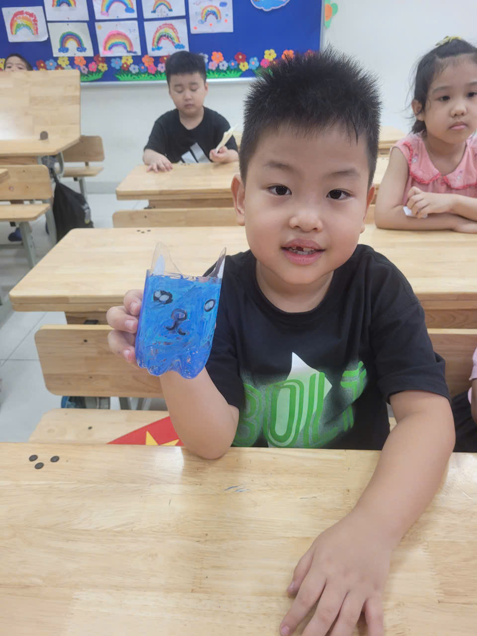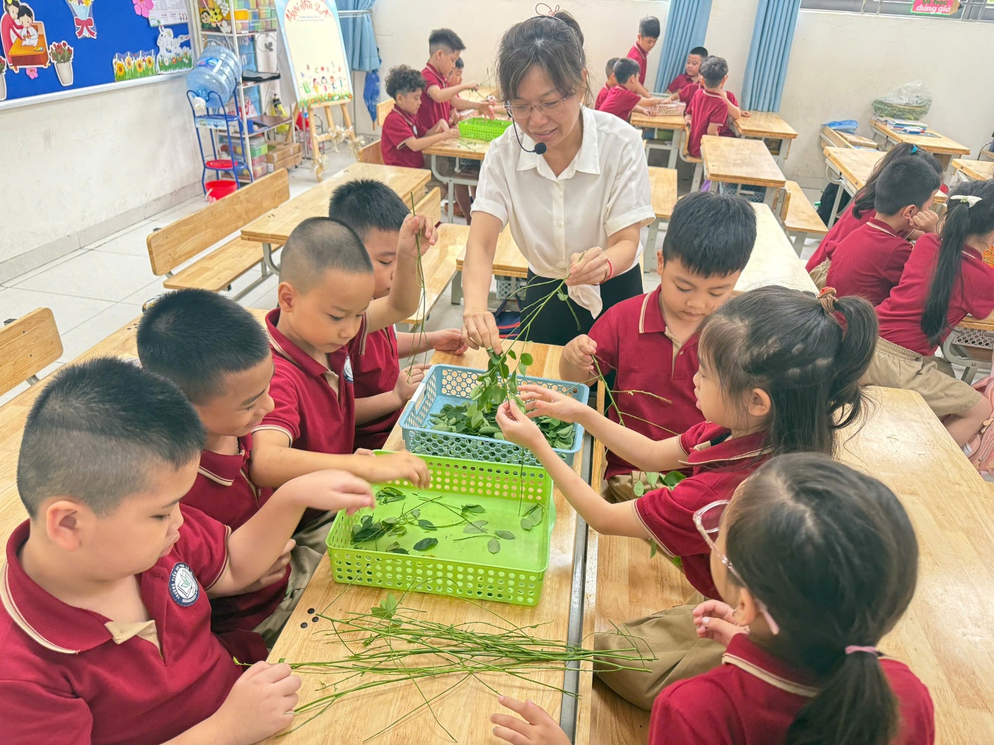 Với sự hướng dẫn của giáo viên, các em đã tái chế những chai nước bỏ đi thành chậu trồng cây nhỏ gọn, dễ thương. Những mầm xanh được ươm mầm từ chính đôi tay của học sinh không chỉ góp phần làm đẹp không gian học tập mà còn truyền đi thông điệp sống xanh – sạch – đẹp tới mọi người.