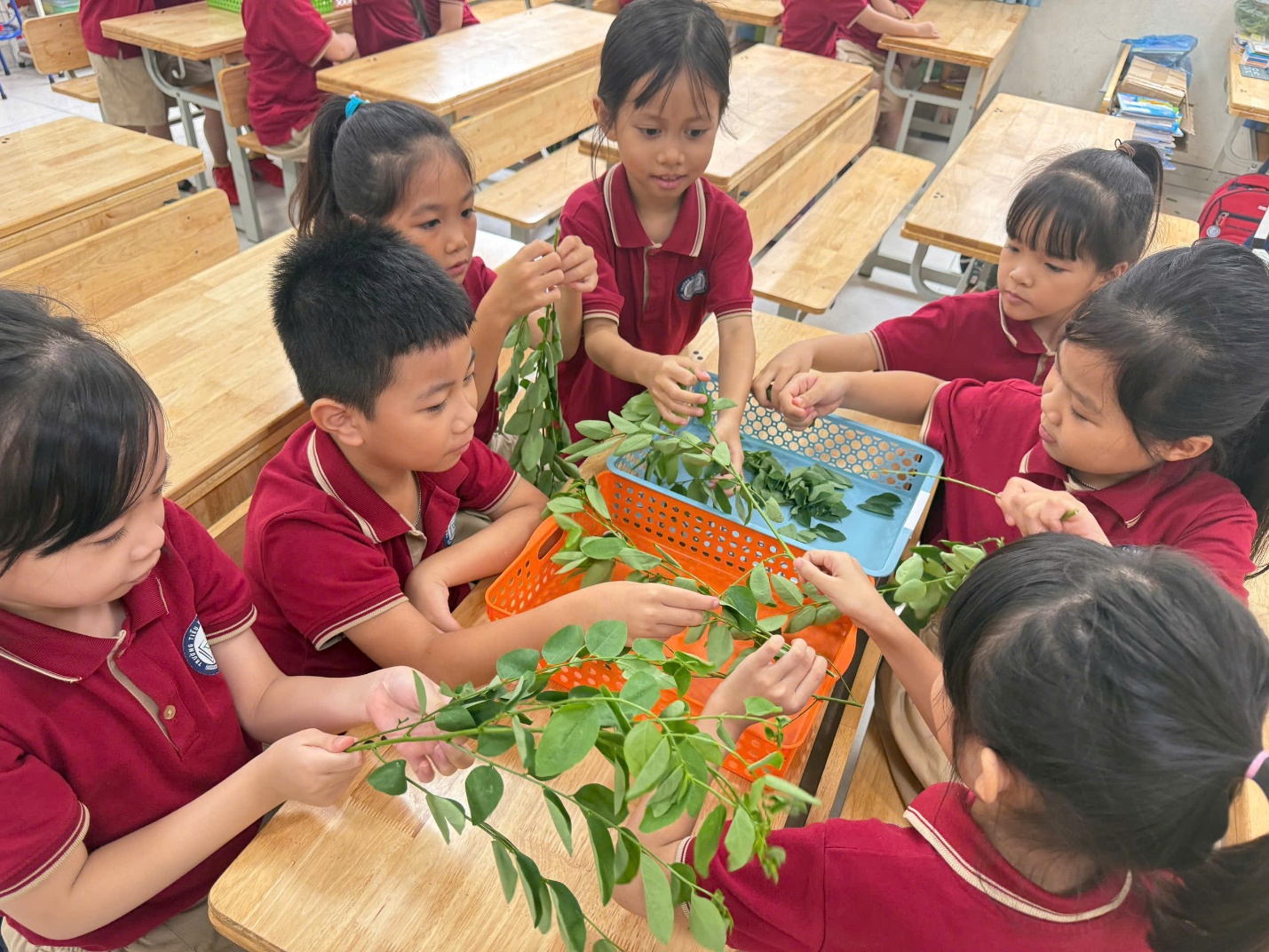 Không chỉ dừng lại ở các hoạt động bảo vệ môi trường, các em còn được hướng dẫn thực hành nhặt rau, phụ giúp mẹ công việc bếp núc tại nhà. Đây là cách giáo dục thiết thực giúp học sinh biết yêu lao động, hiểu công sức của cha mẹ và rèn luyện kỹ năng sống cơ bản.