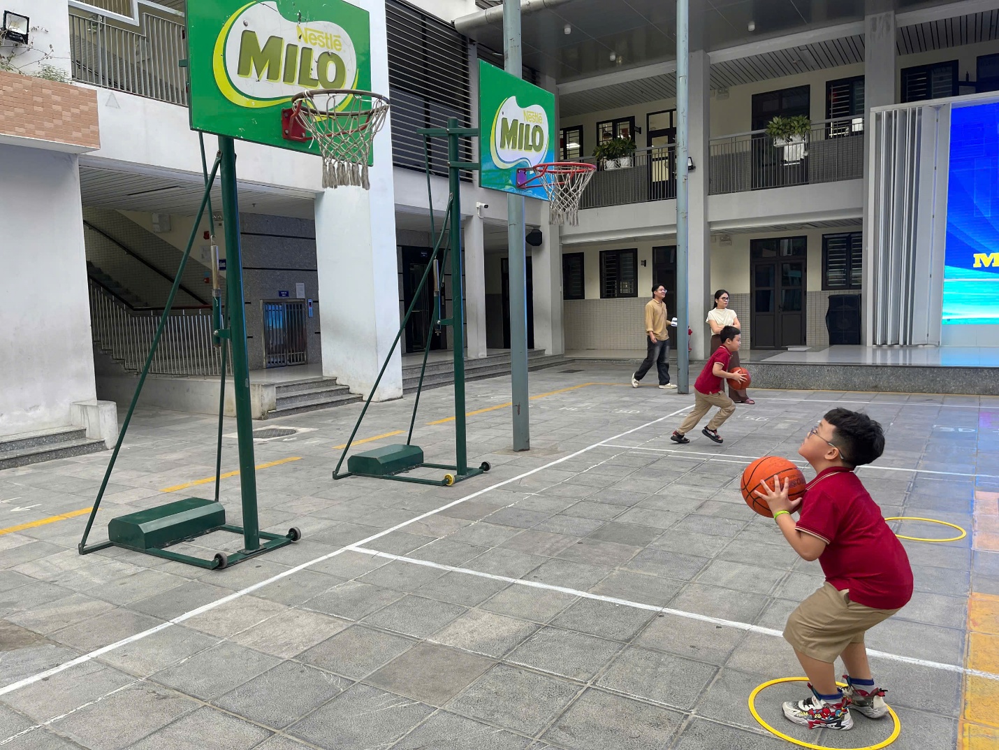 Sau phần khai mạc trang trọng, các đội thi bước vào phần khởi động và thi đấu. Mỗi bạn đều cố gắng hết mình, ném những quả bóng thật chính xác vào rổ.