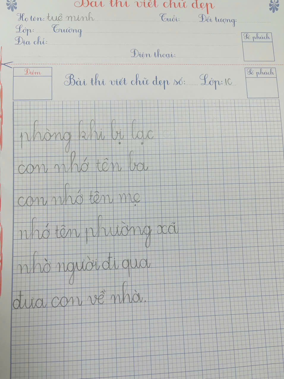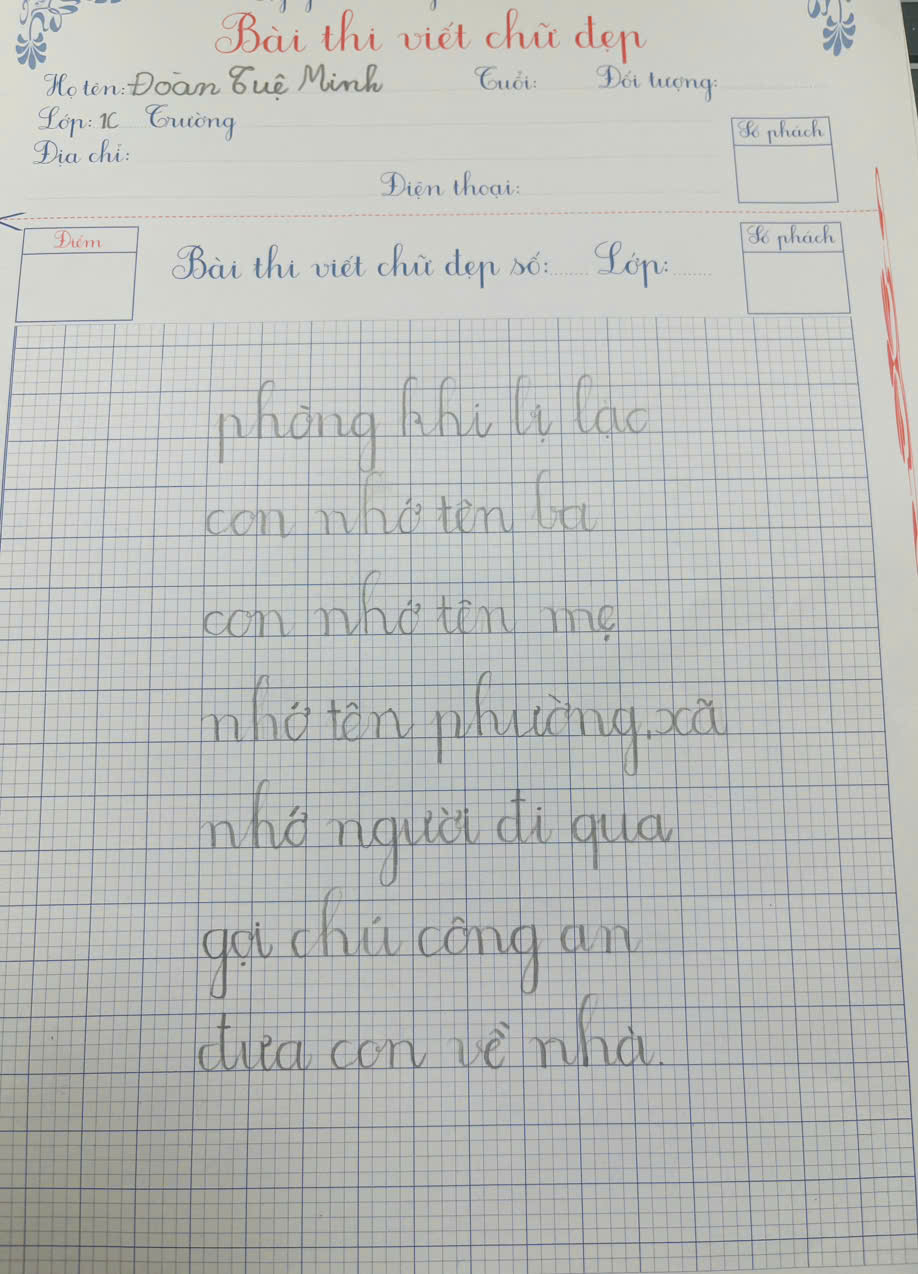 Qua từng nét chữ ngay ngắn, tròn đều, các em không chỉ thể hiện khả năng viết đúng, viết đẹp mà còn cho thấy sự tiến bộ rõ rệt trong ý thức học tập và giữ gìn vở sạch – chữ đẹp. Những bài viết tuy còn non nớt nhưng chứa đựng sự chăm chỉ, nỗ lực và niềm yêu thích học tập của các em học sinh lớp Một.
