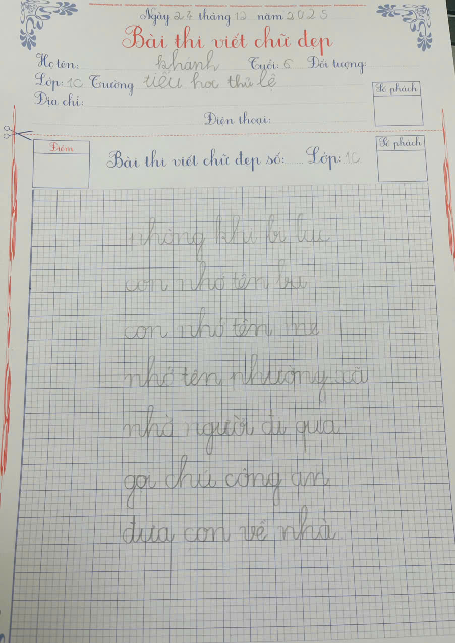 Nhằm góp phần rèn luyện kỹ năng viết chữ, hình thành đức tính cẩn thận, kiên trì cho học sinh ngay từ những năm đầu tiểu học, HS lớp 1C Trường Tiểu học Thủ Lệ đã tham gia hoạt động thi viết chữ đẹp với tinh thần nghiêm túc, hào hứng và đầy cố gắng.