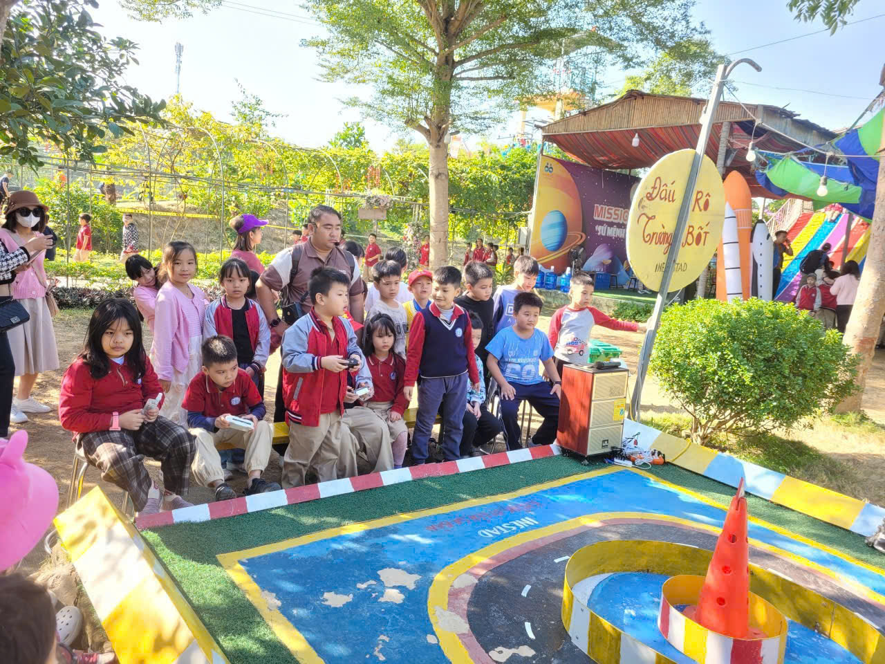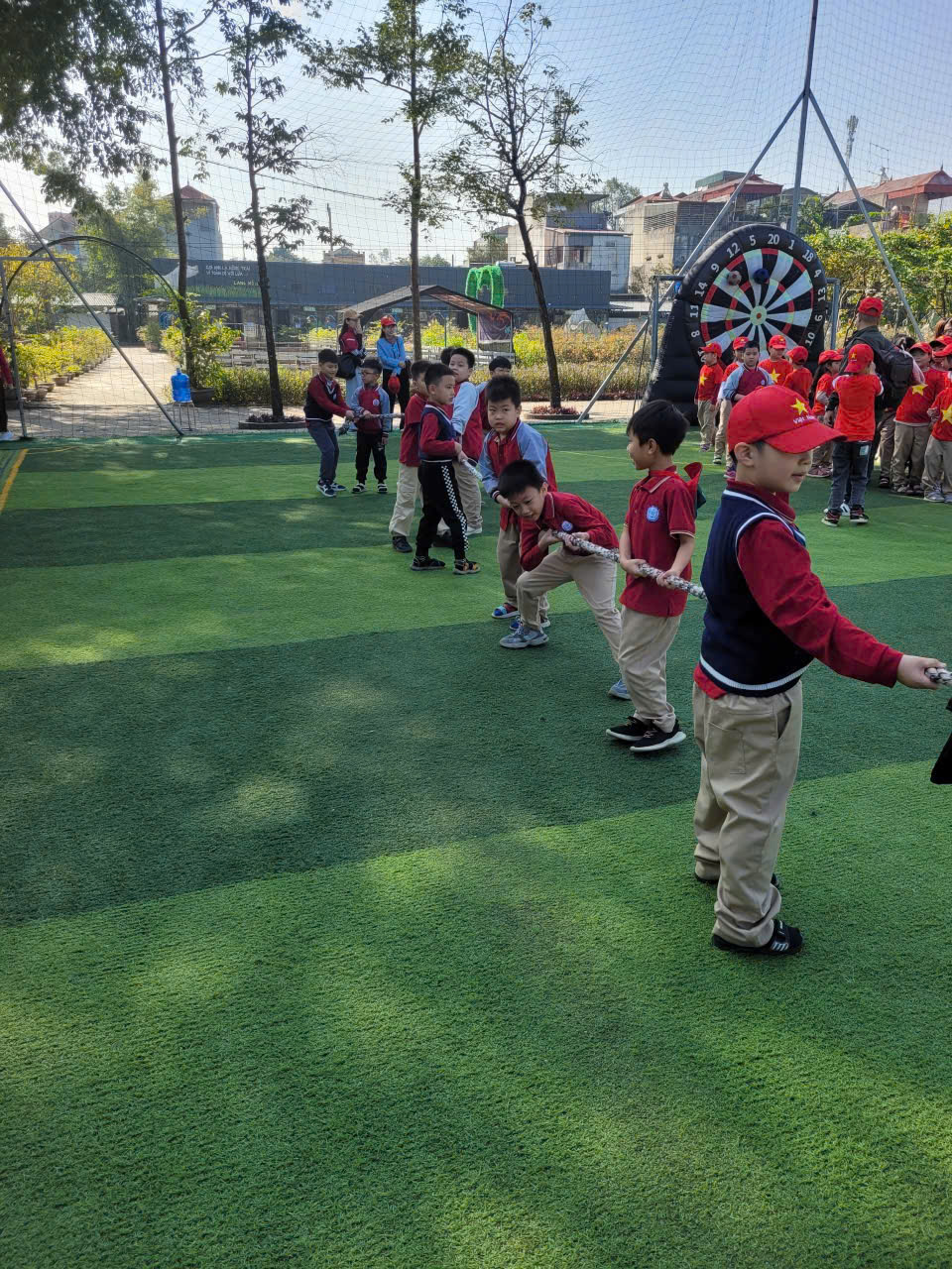 Các hoạt động chính mà học sinh lớp 2B đã tham gia bao gồm: Trò chơi dân gian, các em được thử sức với các trò chơi đậm nét truyền thống như :kéo co…Những trò chơi này không chỉ mang lại tiếng cười mà còn giúp các em rèn luyện sự đoàn kết và hợp tác. Hoạt động vận động ngoài trời: Không thể bỏ qua các trò chơi vận động lí thú khác như trượt cỏ, leo núi, bắn cung, bóng rổ hay xe điện đụng. Sự sôi nổi của các hoạt động này giúp các em phát triển thể chất toàn diện. Hoạt động trải nghiệm làm nông dân: Một trong những hoạt động được các em yêu thích nhất là được hóa thân thành các bác nông dân, tham gia xới đất và cho gia súc, gia cầm ăn. Đây là cơ hội tuyệt vời để các em hiểu hơn về công việc và sự chăm chỉ của người lao động.
