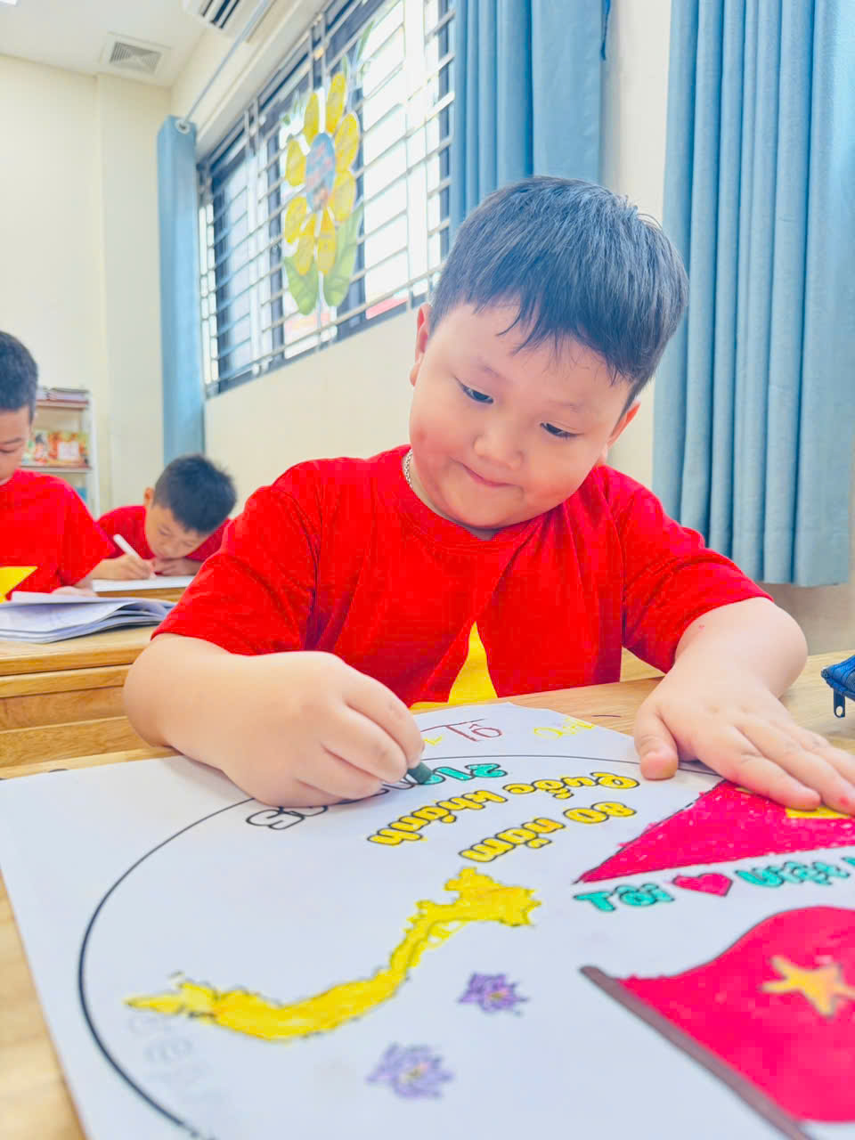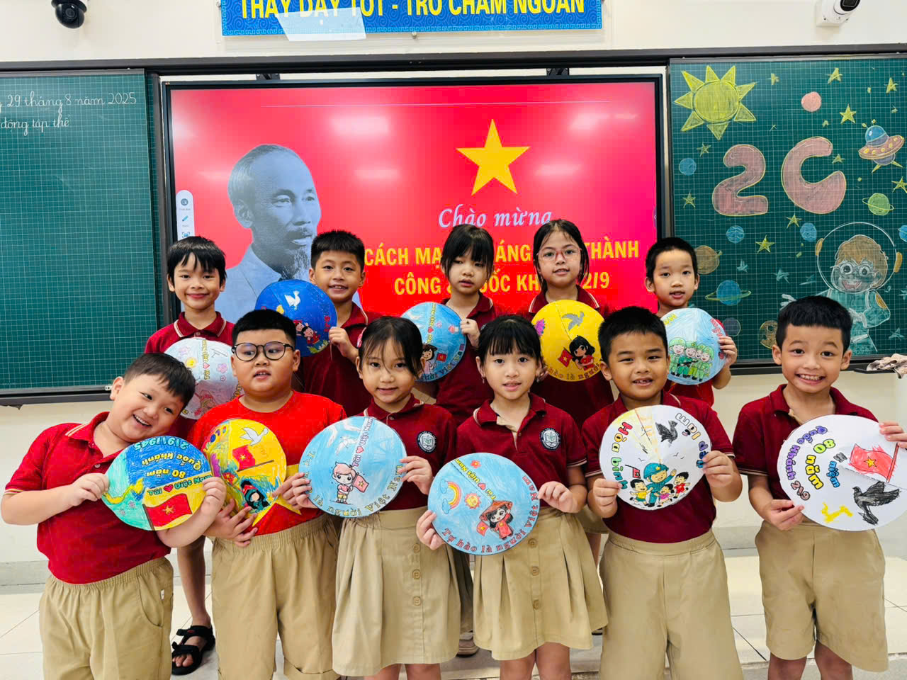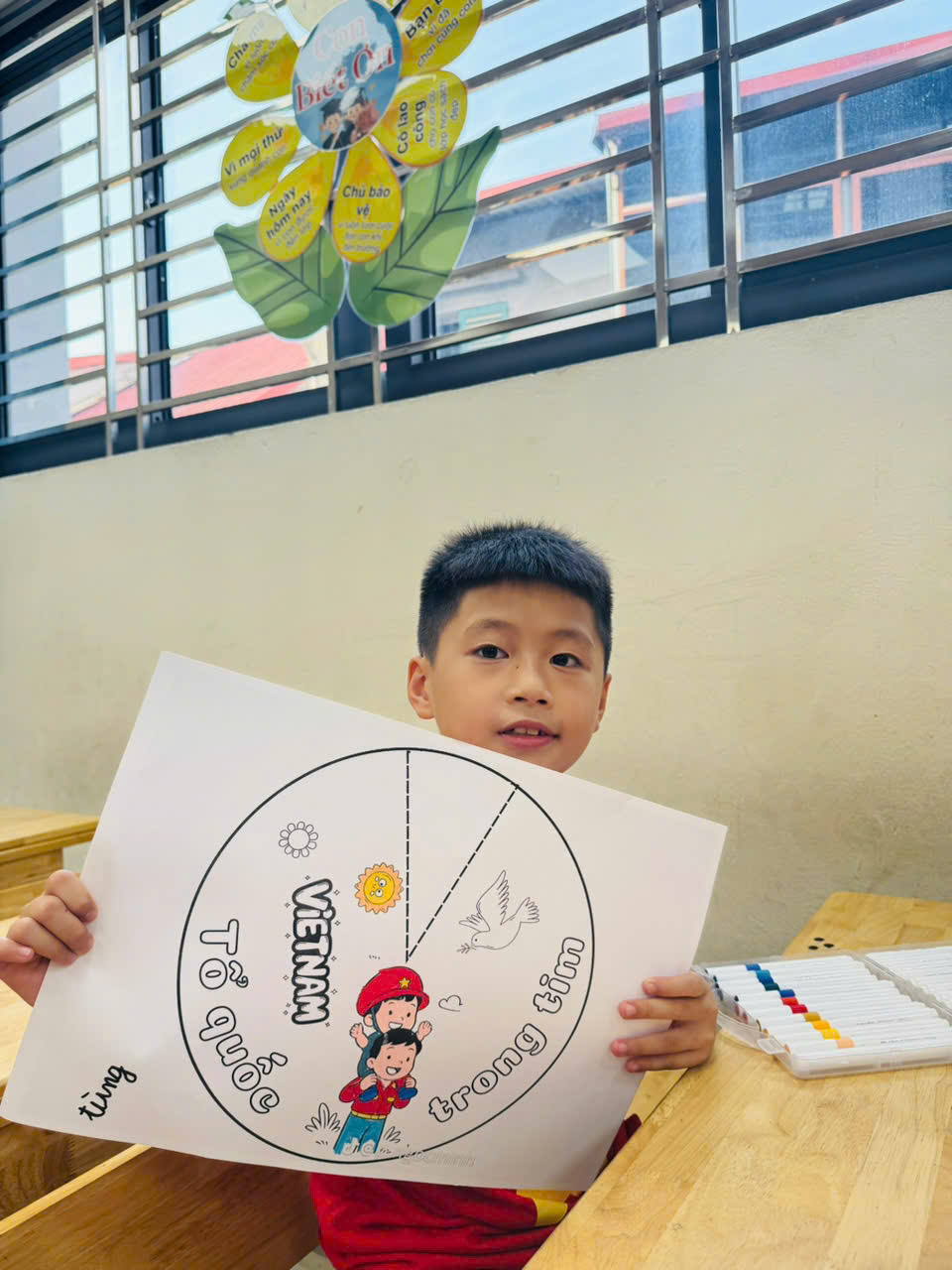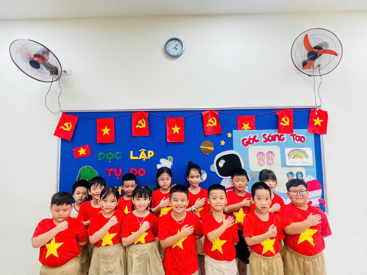 Không chỉ vậy, trong không gian mùa thu lịch sử, các bạn nhỏ lớp 2C đã được hòa mình vào khí thế cả nước bằng nhiều hoạt động ý nghĩa và lan tỏa. Từng lớp học rực rỡ sắc cờ đỏ sao vàng, từng hành lang tràn đầy không khí hân hoan. Từng ánh mắt trong veo và nụ cười hồn nhiên, nâng niu những lá cờ, những dải băng rôn đỏ thắm – như những nhịp tim trong trẻo đang nối dài mạch nguồn lịch sử cha ông.