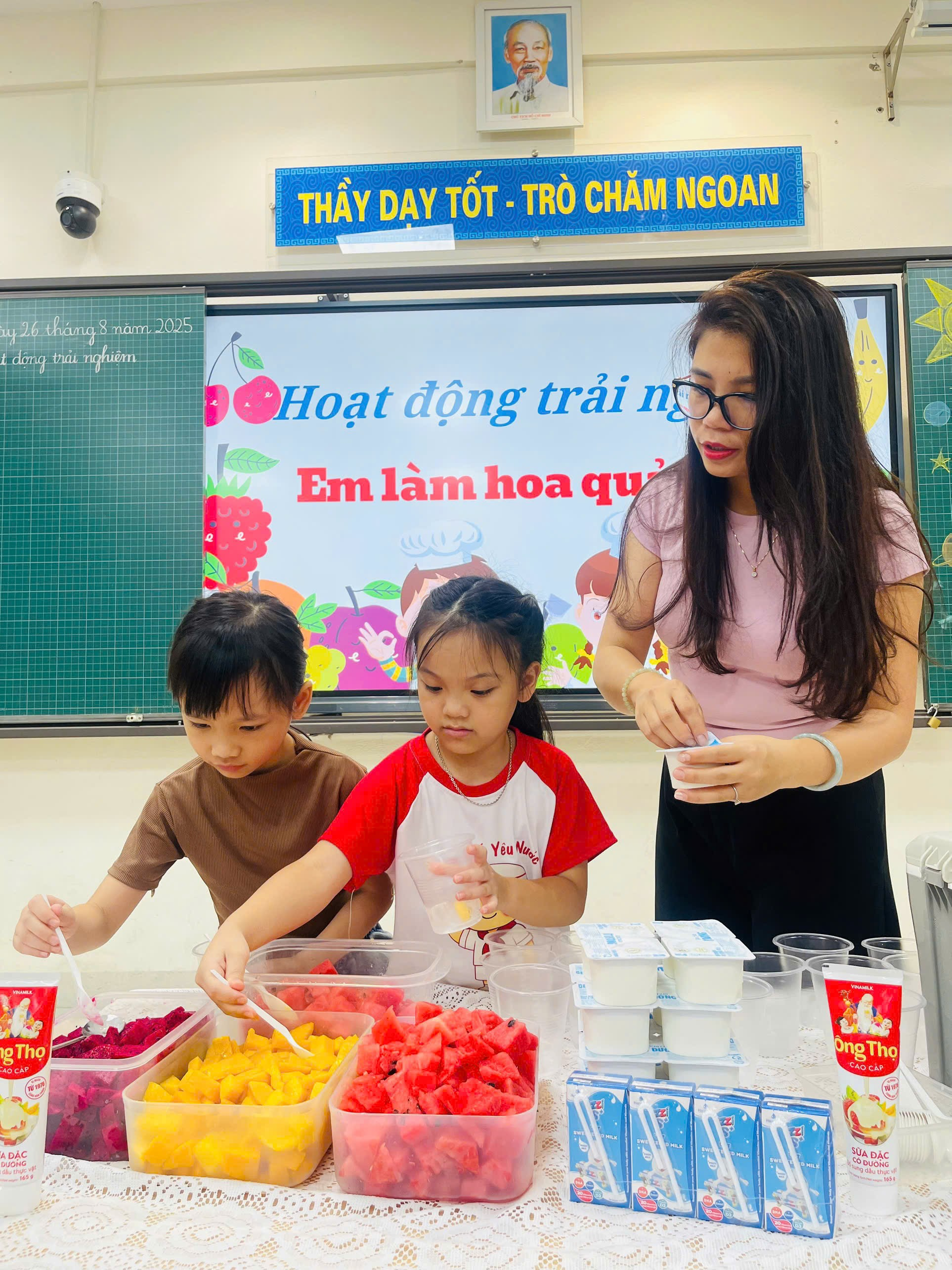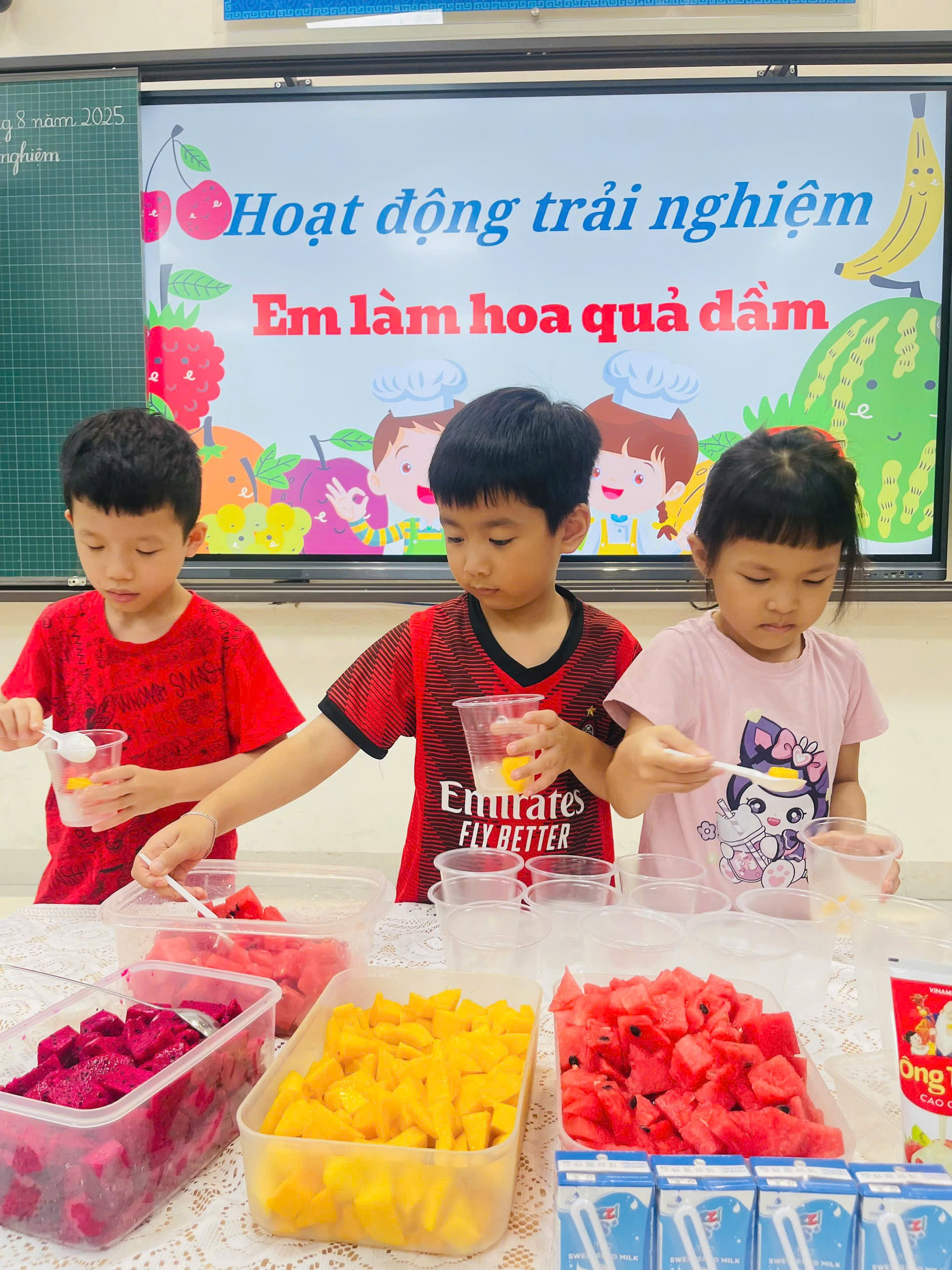 Với nguyên liệu đơn giản, dễ làm và tốt cho sức khỏe, các em học sinh đã cùng nhau chế biến món sữa chua hoa quả dầm mát lạnh, vừa là hoạt động trải nghiệm kỹ năng sống, vừa là dịp để rèn luyện sự khéo léo, tinh thần hợp tác nhóm. Đây cũng là cơ hội để các em thể hiện sự sáng tạo trong cách bày trí, pha chế, mang đến những ly sữa chua không chỉ ngon mà còn đẹp mắt.
