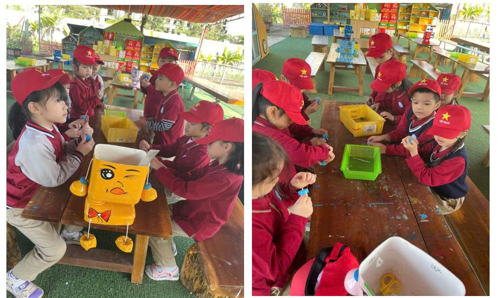 Không chỉ được tiếp cận công nghệ hiện đại, các con còn được trở về với nét đẹp của làng nghề Sơn Đồng, làm đồ thủ công, tô tượng, nặn đất sét, và tham gia lớp “Sắc màu cuộc sống”. Những hoạt động này rèn cho học sinh tính kiên trì, khéo léo và biết trân trọng giá trị lao động. Song song đó, các lớp kỹ năng sống như thoát hiểm – thoát nạn, phòng chống đuối nước được lồng ghép sinh động, giúp học sinh biết tự bảo vệ bản thân trong các tình huống thực tế.