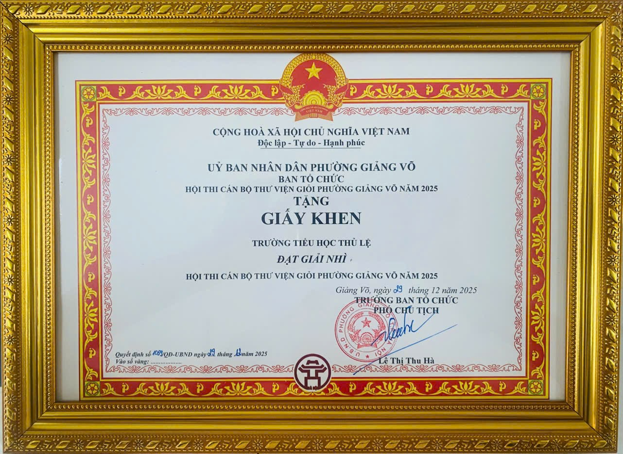 Hội thi là sân chơi chuyên môn bổ ích, góp phần khẳng định vai trò quan trọng của thư viện trường học trong việc xây dựng văn hóa đọc, hỗ trợ đổi mới phương pháp dạy và học, đáp ứng yêu cầu giáo dục trong giai đoạn hiện nay. Tham gia hội thi là các cán bộ thư viện tiêu biểu đến từ các trường học trên địa bàn phường Giảng Võ, mang đến nhiều phần thi được đầu tư công phu, sáng tạo và giàu tính thực tiễn. Trong số các thí sinh tham dự, cô Hoàng Thị Nhung – nhân viên thư viện Trường Tiểu học Thủ Lệ đã để lại ấn tượng sâu sắc với Ban Giám khảo nhờ phong thái tự tin, kiến thức chuyên môn vững vàng, cùng những giải pháp thiết thực trong công tác quản lý và phát triển thư viện trường học. Với sự chuẩn bị nghiêm túc và tinh thần trách nhiệm cao, cô Hoàng Thị Nhung đã xuất sắc đạt Giải Nhì của hội thi. Thành tích này không chỉ là sự ghi nhận cho nỗ lực cá nhân của cô Hoàng Thị Nhung mà còn là niềm tự hào của Trường Tiểu học Thủ Lệ, góp phần khẳng định chất lượng đội ngũ cán bộ, nhân viên nhà trường. Đồng thời, kết quả đạt được cũng là nguồn động viên to lớn để đội ngũ cán bộ thư viện tiếp tục cống hiến, đổi mới và lan tỏa niềm đam mê đọc sách tới học sinh.