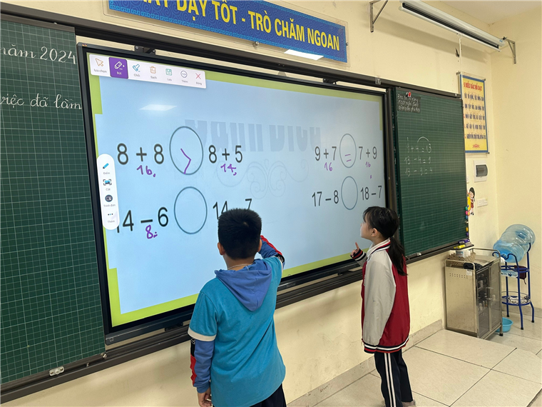 Sau đây là một số hình ảnh dạy và học của cô trò khối 2 trong việc sử dụng màn hình tương tác thông minh Viewsonic: