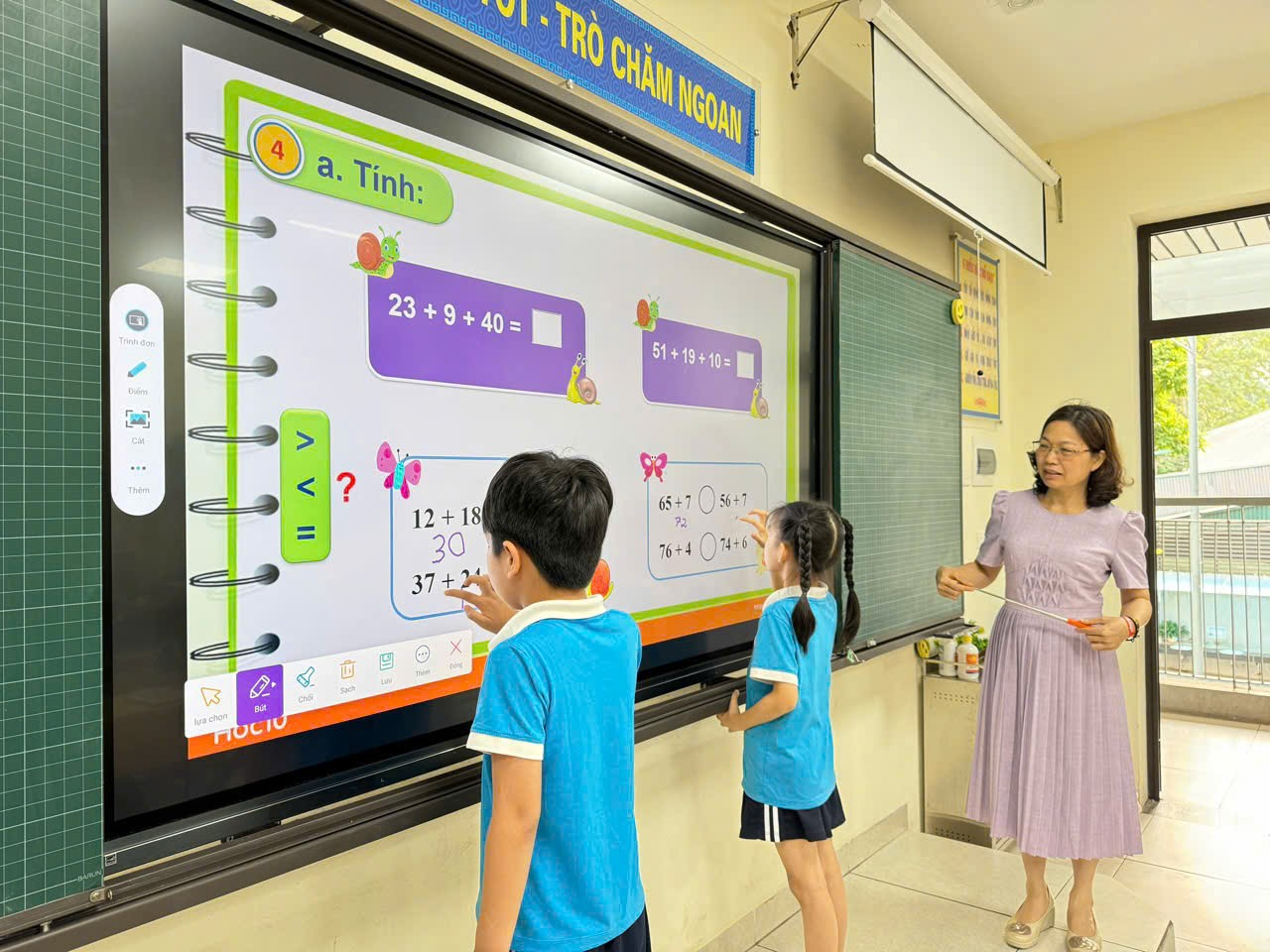 Sáng 30/11/2024, tập thể cán bộ giáo viên nhà trường đã có buổi tập huấn hướng dẫn về màn hình tương tác thông minh ViewSonic và phần mềm myViewboard với đội ngũ chuyên gia của Tập đoàn Viewsonic. Điều này đã giúp giáo viên khối 2 sử dụng màn hình tương tác để trình bày bài giảng sinh động hơn. Giáo viên có thể vẽ, viết, chèn tệp đa phương tiện, xây dựng khối hình 3D… ngay trên màn hình tương tác có kết nối với myViewBoard. Nhờ đó mà giáo viên có thể tập trung bài giảng mà không cần thao tác thông qua máy tính như với máy chiếu thông thường. Học sinh cũng được viết, vẽ, chèn hình ảnh… giúp các em được tham gia vào bài giảng và gia tăng hứng thú học tập. Học sinh khối 2 bạn nào cũng tò mò, thích thú, tập trung hơn vào bài học. Bài học trở nên thật dễ hiểu và dễ tiếp thu.