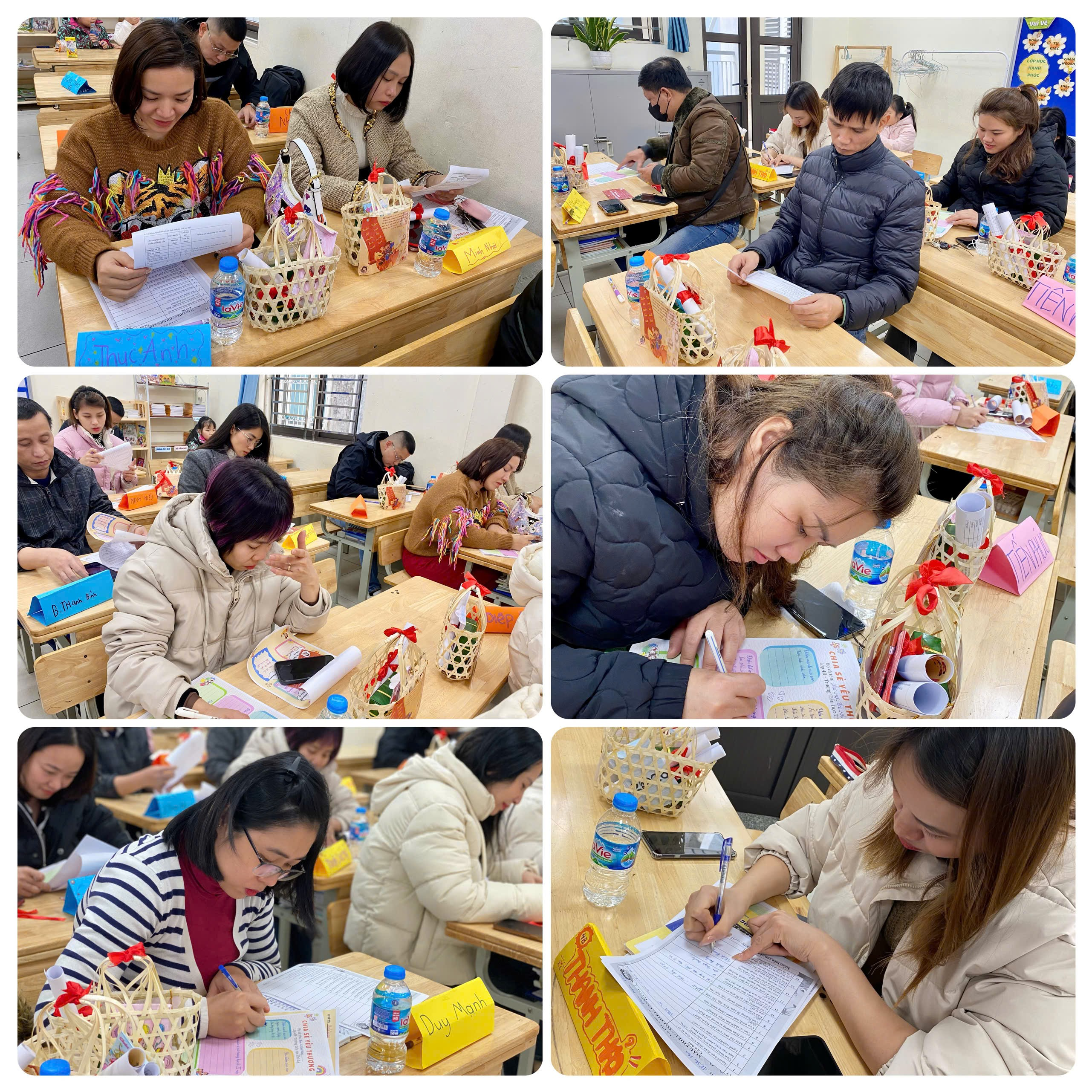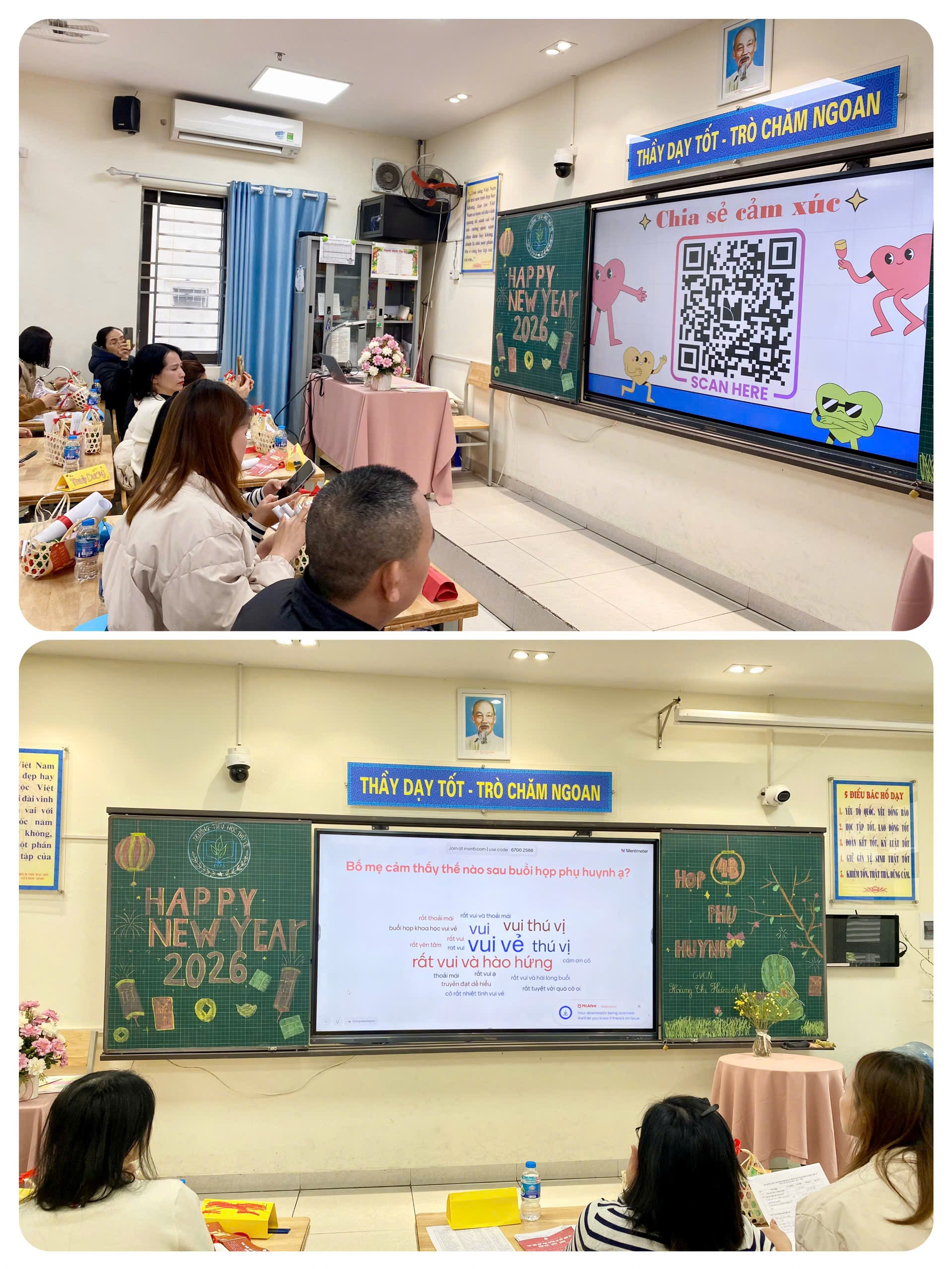 Điểm đặc biệt đến từ sự chuẩn bị đầy chủ động của các bạn học sinh: các con tự vẽ bảng trang trí chào đón bố mẹ, tự làm biển tên để phụ huynh dễ dàng nhận ra chỗ ngồi, và tỉ mỉ trang trí những phong bao lì xì nhỏ xinh gửi tặng bố mẹ như một lời cảm ơn đáng yêu sau học kì I.