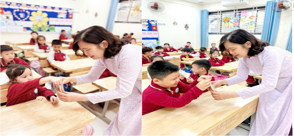 Nhân dịp đầu xuân năm mới, cô giáo đã dành tặng mỗi con một chiếc bút xinh xinh như một món quà mừng tuổi đầy yêu thương. Chiếc bút nhỏ bé nhưng chứa đựng biết bao niềm tin và hy vọng của cô gửi gắm đến các con: chăm ngoan, học giỏi, nắn nót từng nét chữ và viết nên những ước mơ tươi đẹp của mình.
