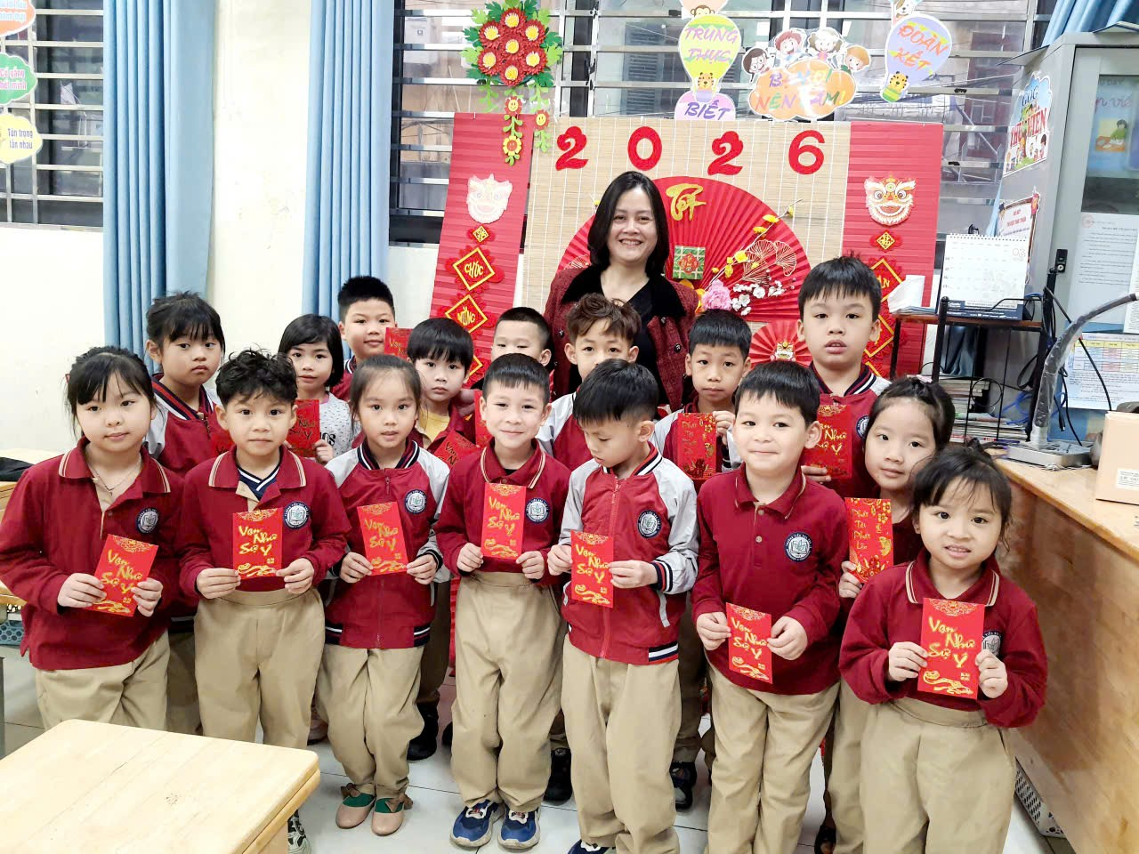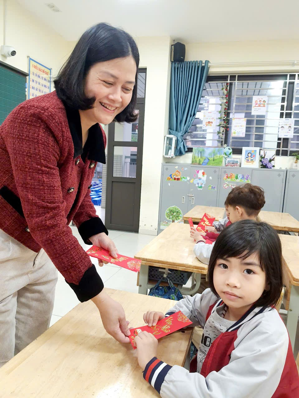 Đại diện BPH lớp chúc tuổi mới và tặng lì xì cho các con học sinh