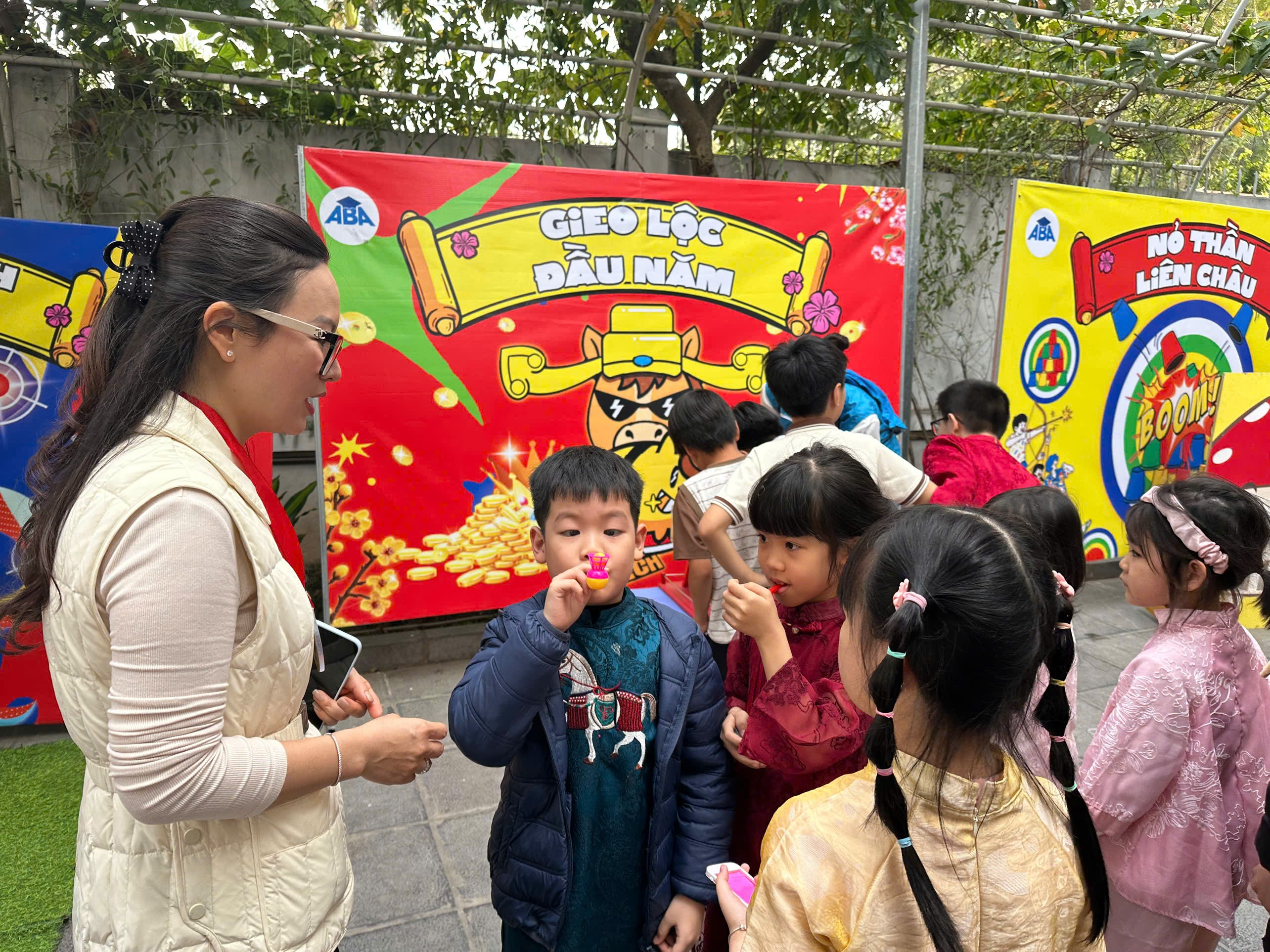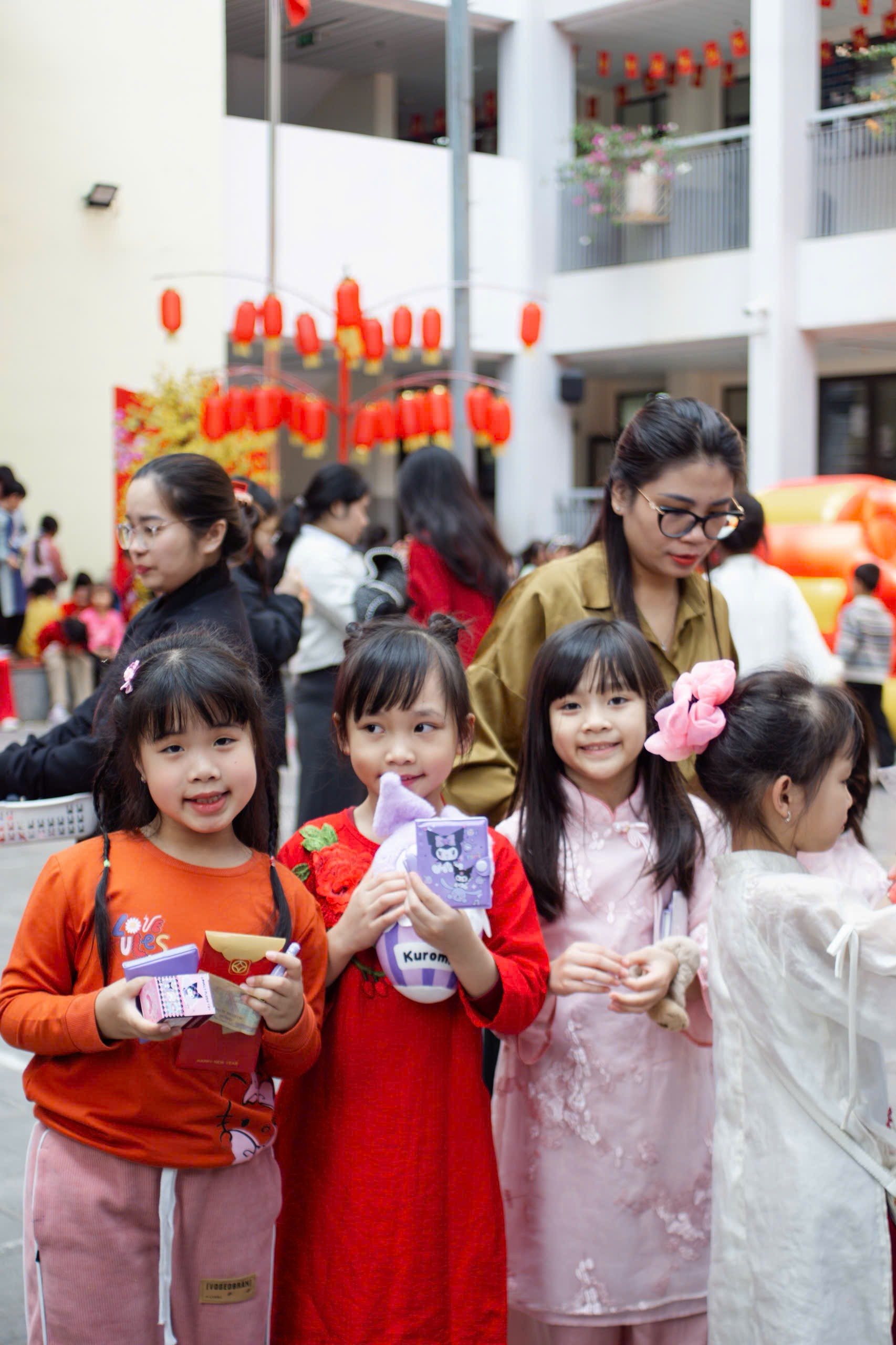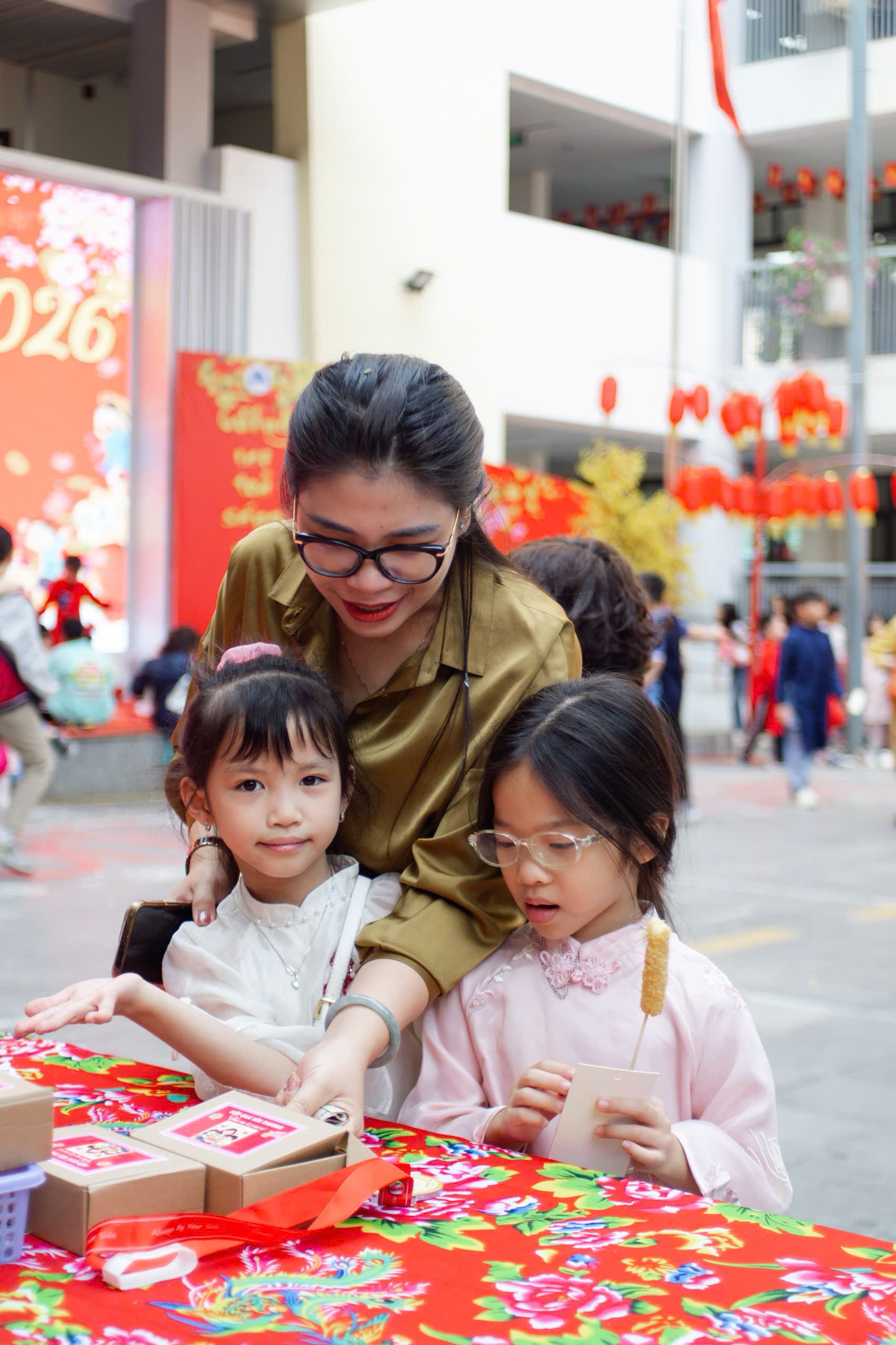 Bên cạnh đó, các con còn được dạo quanh các gian hàng xuân, tự mình lựa chọn và mua sắm những món đồ nhỏ xinh, trải nghiệm không khí chợ xuân nhộn nhịp ngay tại trường.