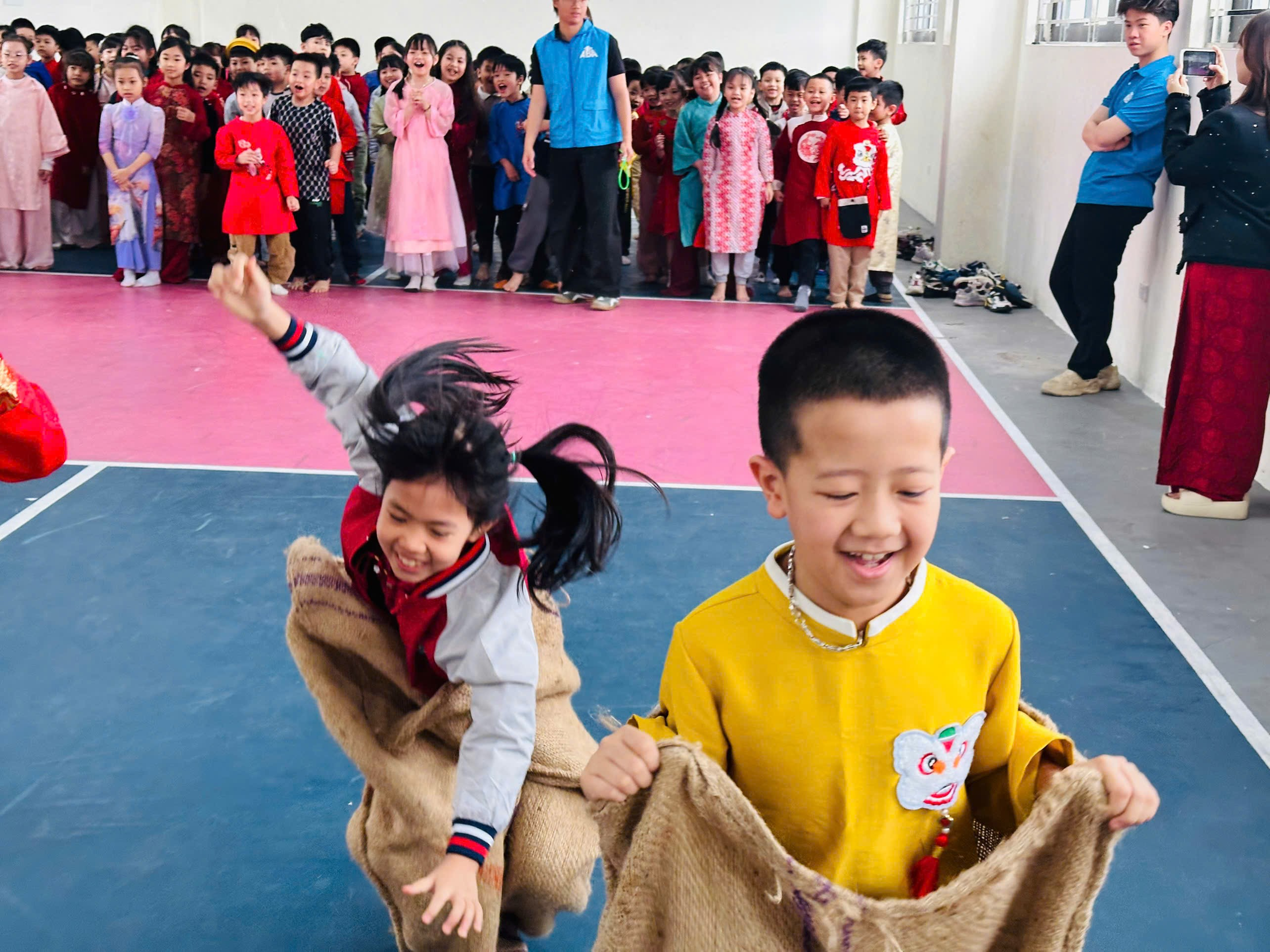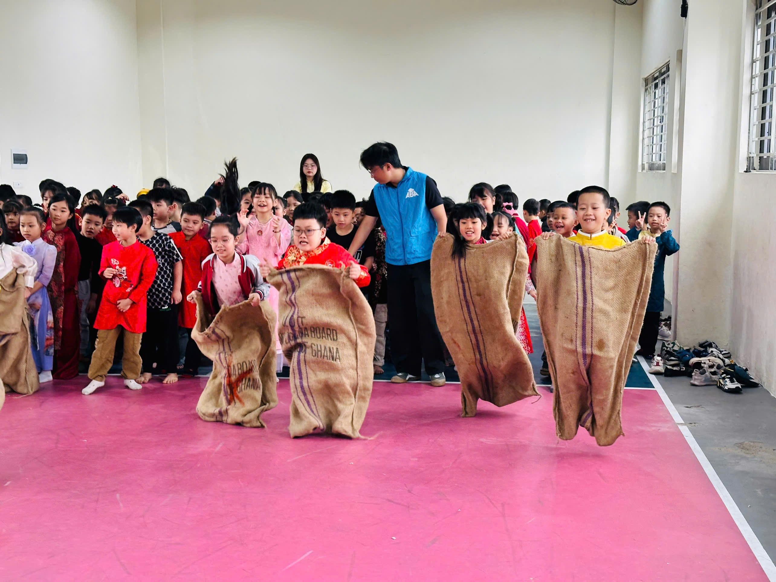 Ngay từ đầu chương trình, các con đã được thưởng thức những tiết mục văn nghệ đặc sắc, mang đến không khí rộn ràng và đầy sắc xuân. Đặc biệt, màn biểu diễn ảo thuật của chú hề khiến cả sân trường vô cùng thích thú với những màn biến hóa bất ngờ, tiếng cười giòn tan vang khắp nơi.