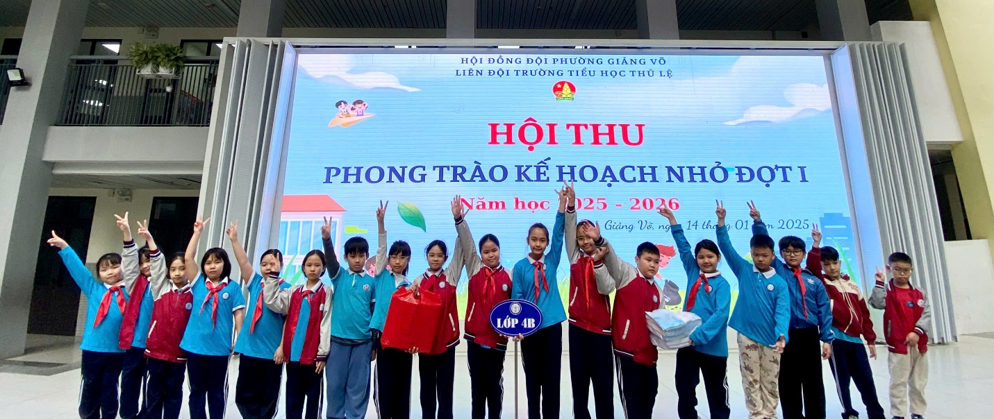 Thực hiện Kế hoạch phát động phong trào “Kế hoạch nhỏ” đợt I năm học 2025–2026 của Liên đội Trường Tiểu học Thủ Lệ, tập thể học sinh lớp 4B tích cực tham gia thu gom giấy vụn, tập vở cũ, sách cũ… để lan tỏa thói quen tiết kiệm, góp phần xây dựng môi trường xanh – sạch – đẹp và gây quỹ Đội theo đúng tinh thần phong trào.